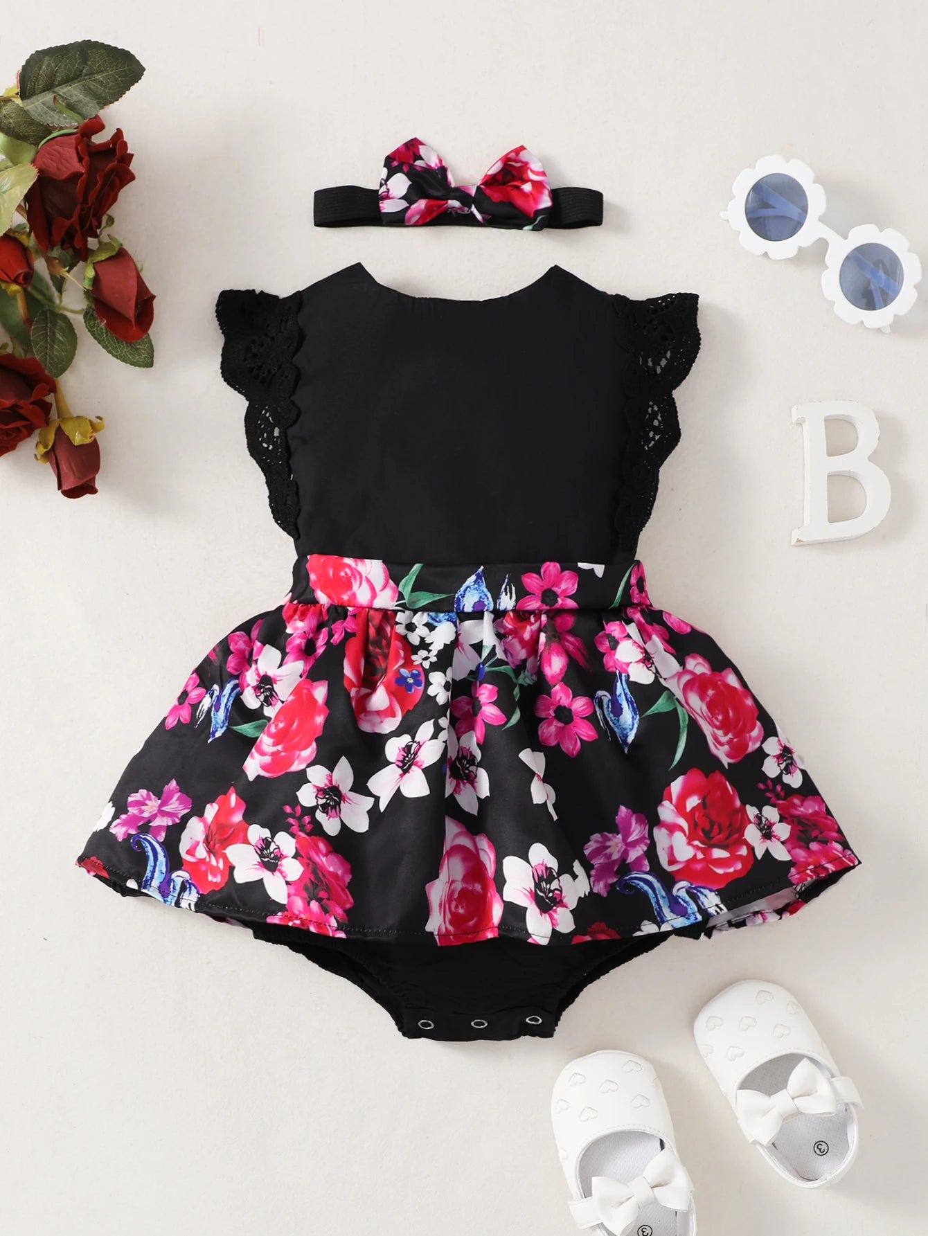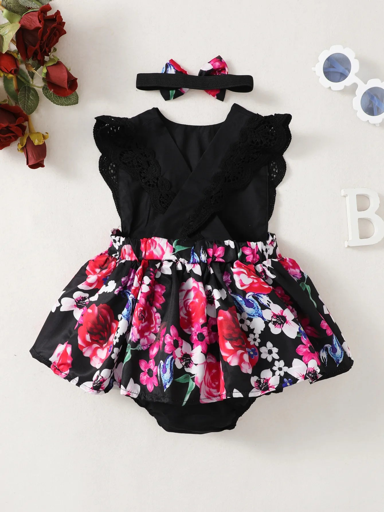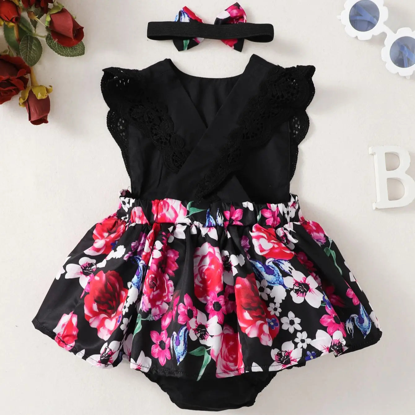 Bestellen Sie jetzt und kleiden Sie Ihr Baby stilvoll mit unserem ärmellosen Spitzenblumendruckkleid!