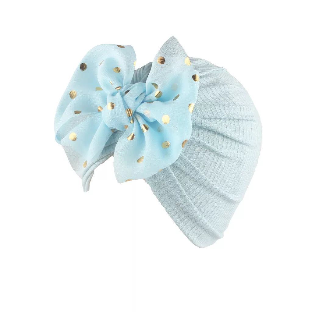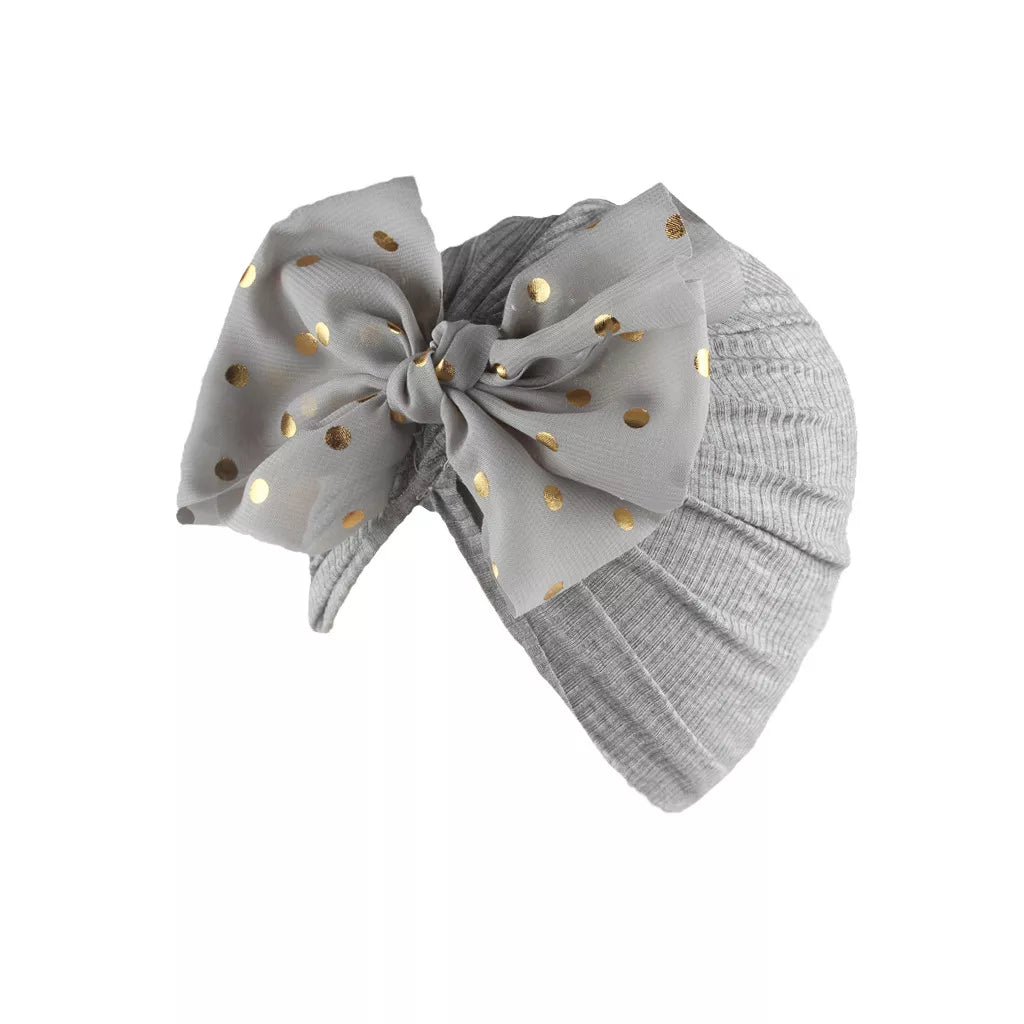 Schöne glänzende Babymütze mit Schleife: süßer, einfarbiger Turban