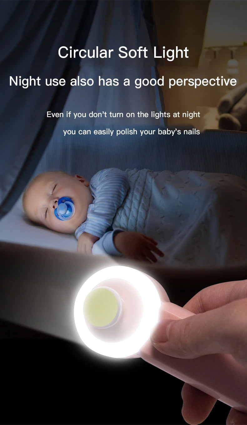 Ensure gentle and safe nail care for your baby with our Luminous Rechargeable Baby Nail Clipper. With its gentle polishing action, soft sound, low noise, and soft light feature, it's the perfect solution for hassle-free nail care, day or night. Order now and provide your baby with the gentle nail care they deserve!