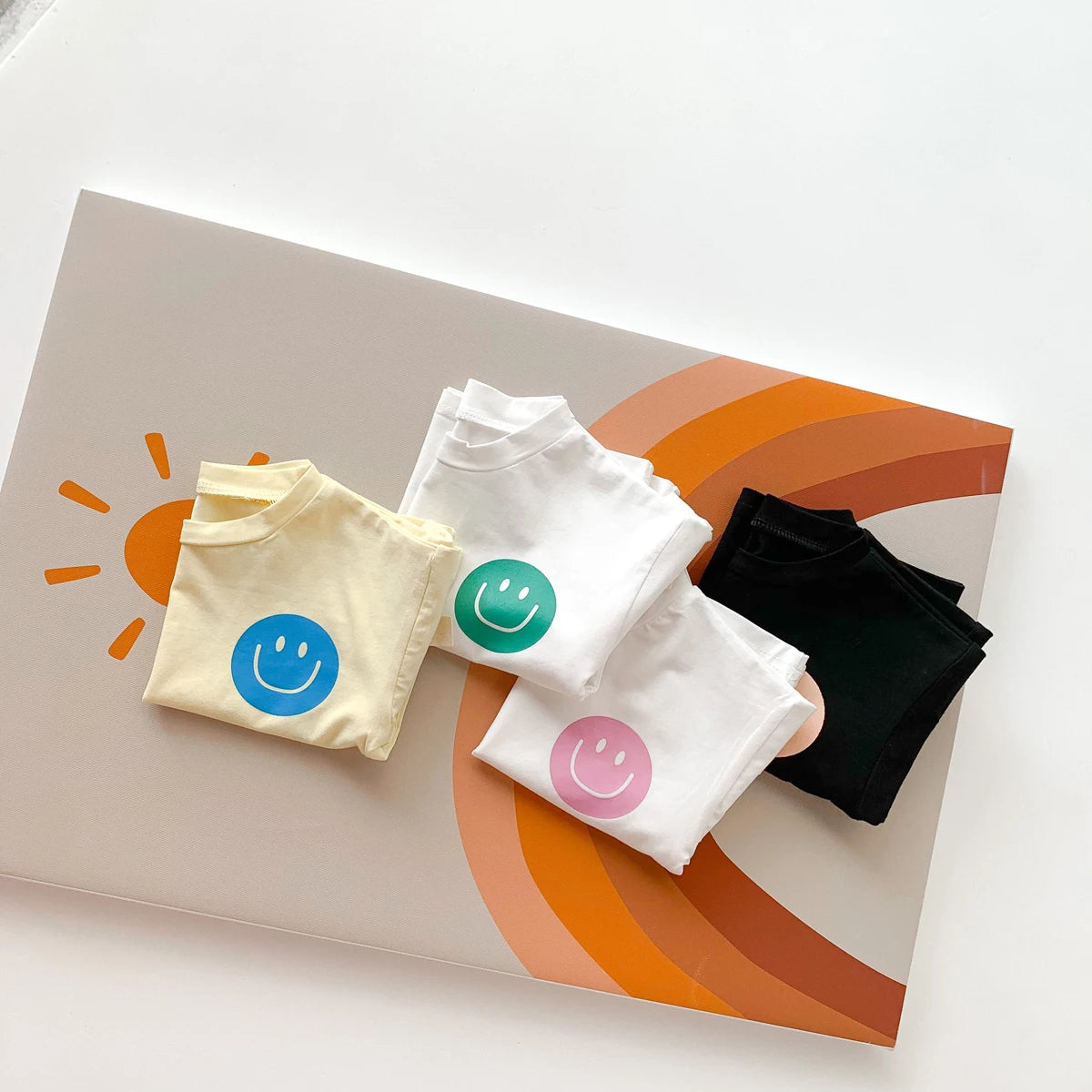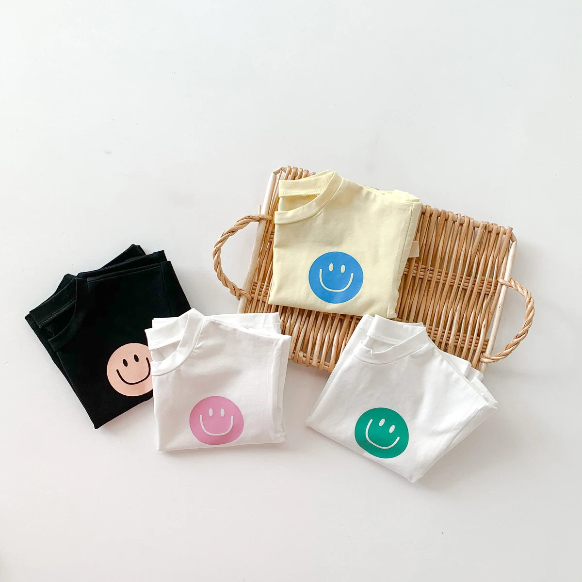 The set includes a classic O-neck T-shirt featuring a cute smiley face graphic, paired with comfortable plaid shorts that are perfect for playtime or outdoor adventures. With its pullover design, dressing your baby has never been easier!