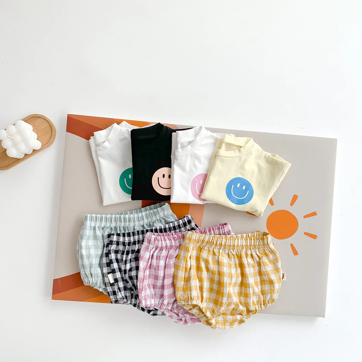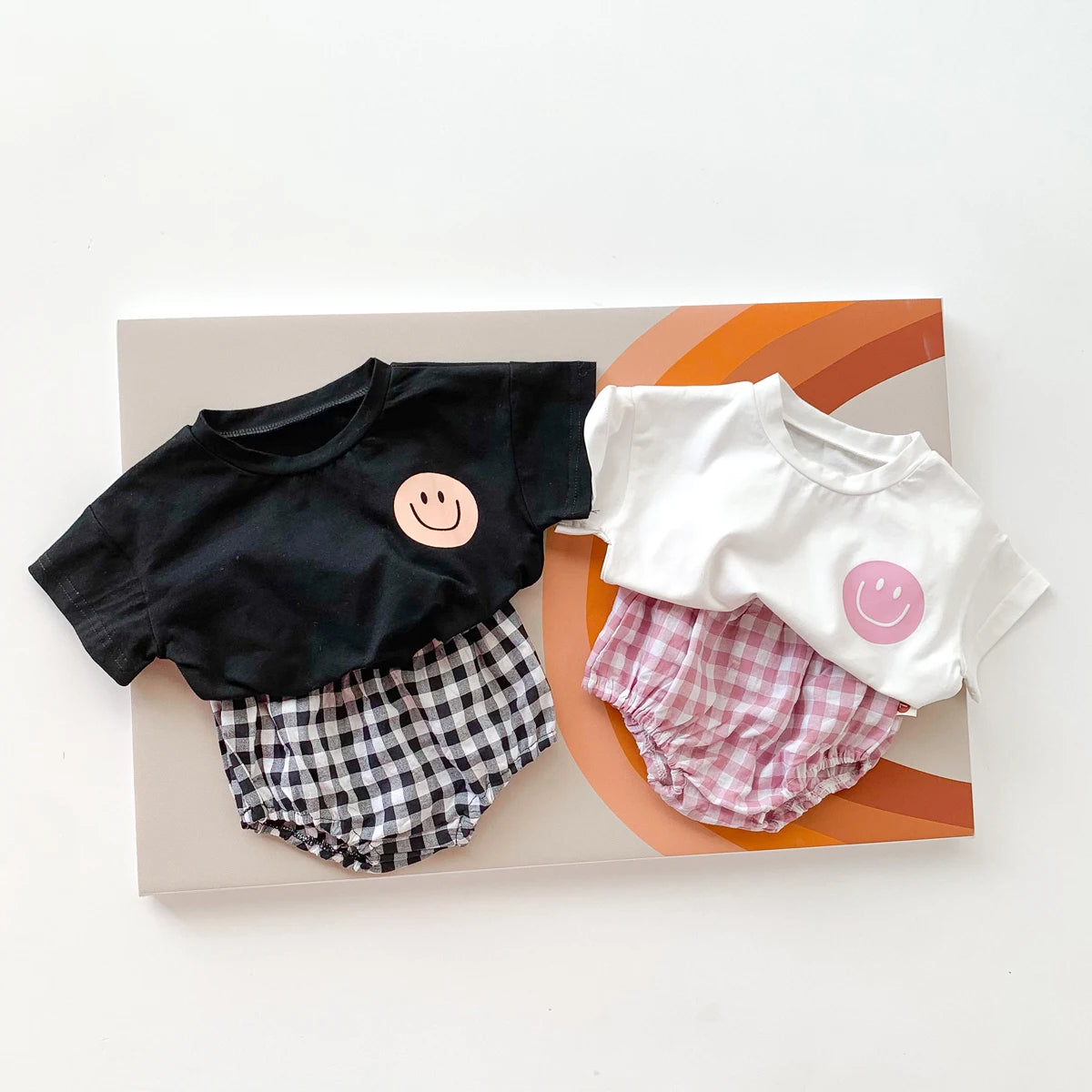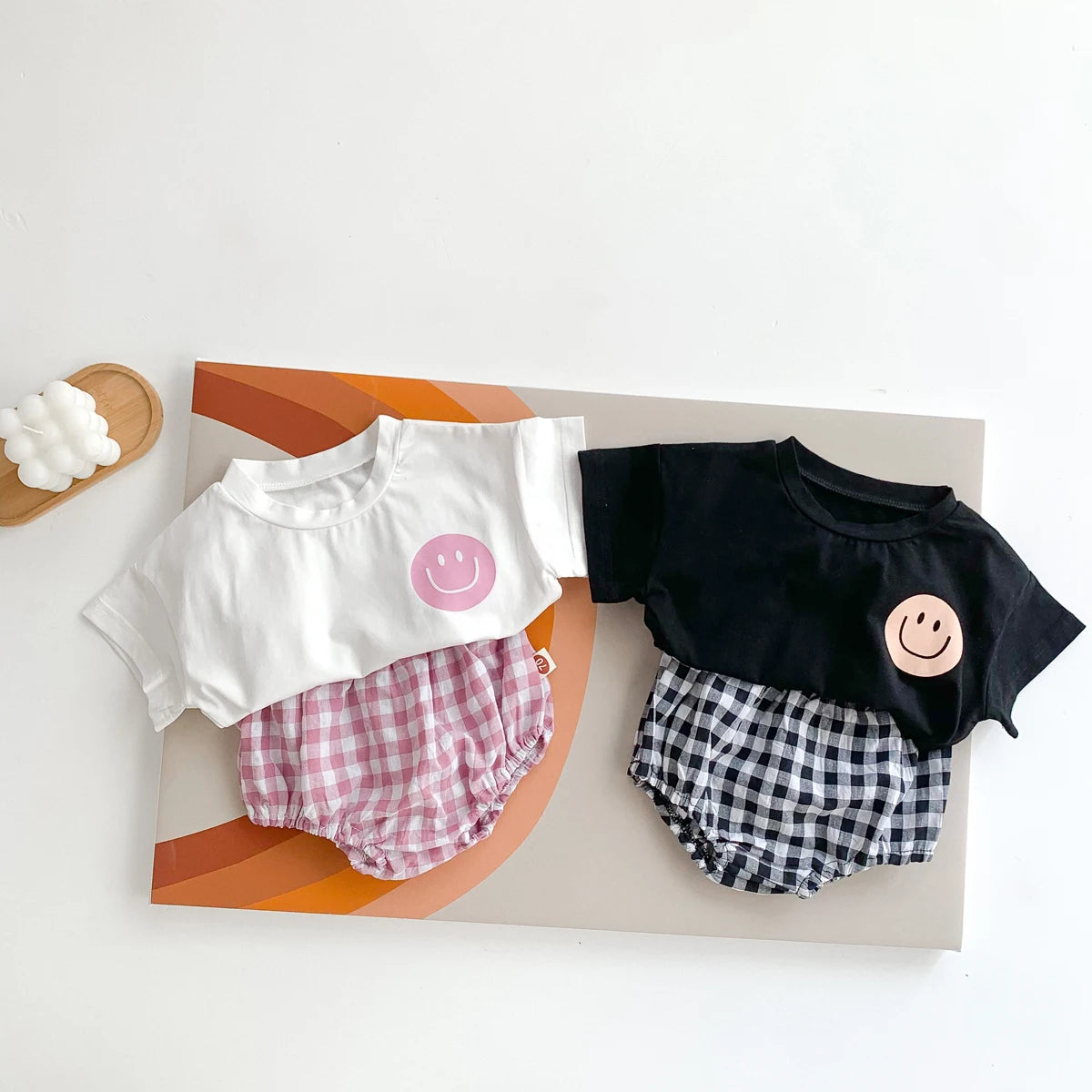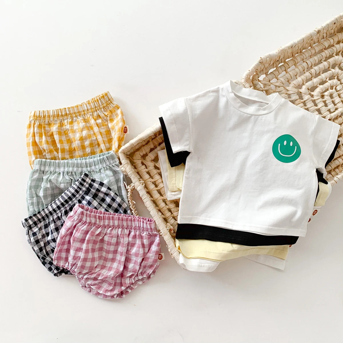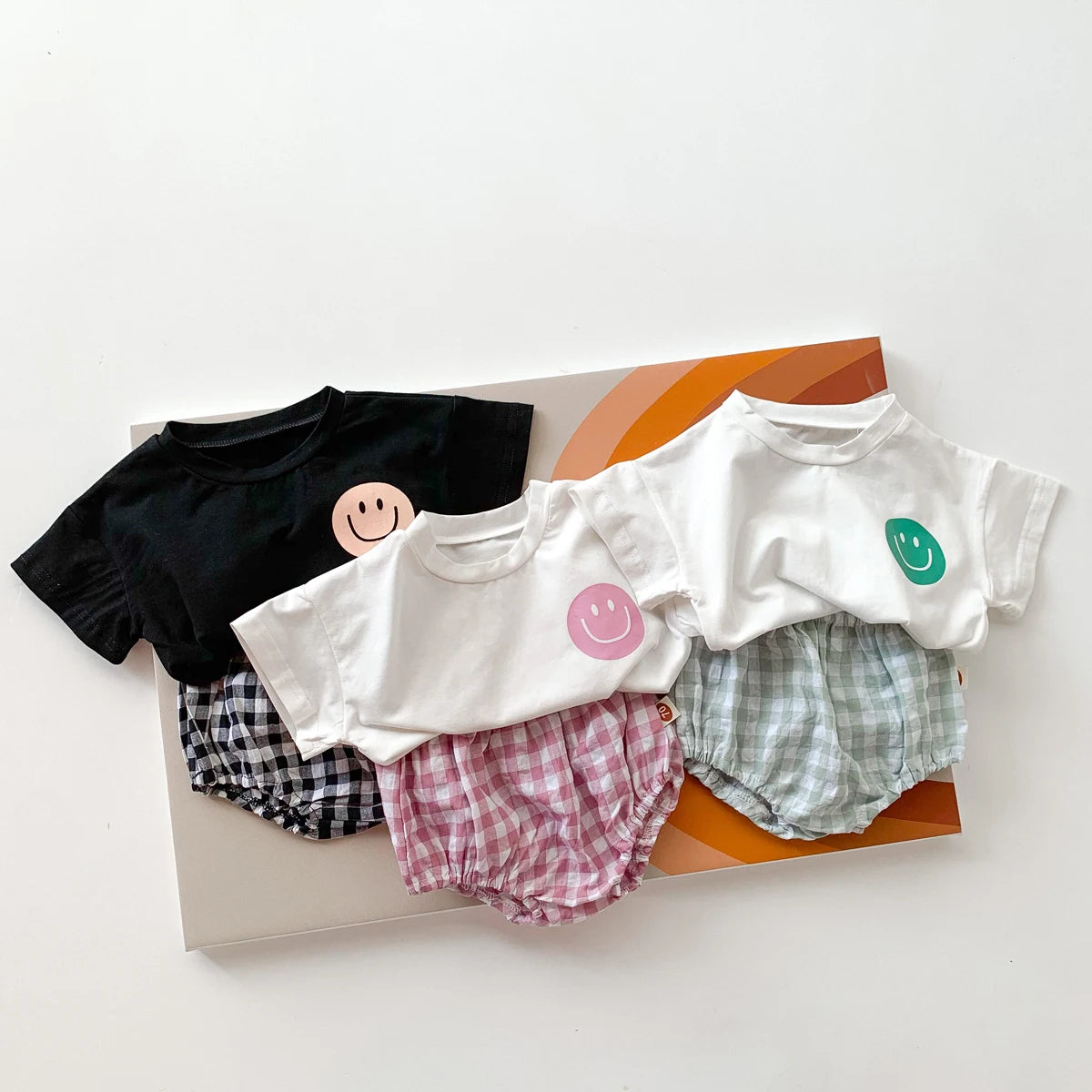 Introducing Our Smile Face Cotton T-shirt + Plaid Shorts Set: Summer Baby Outfit