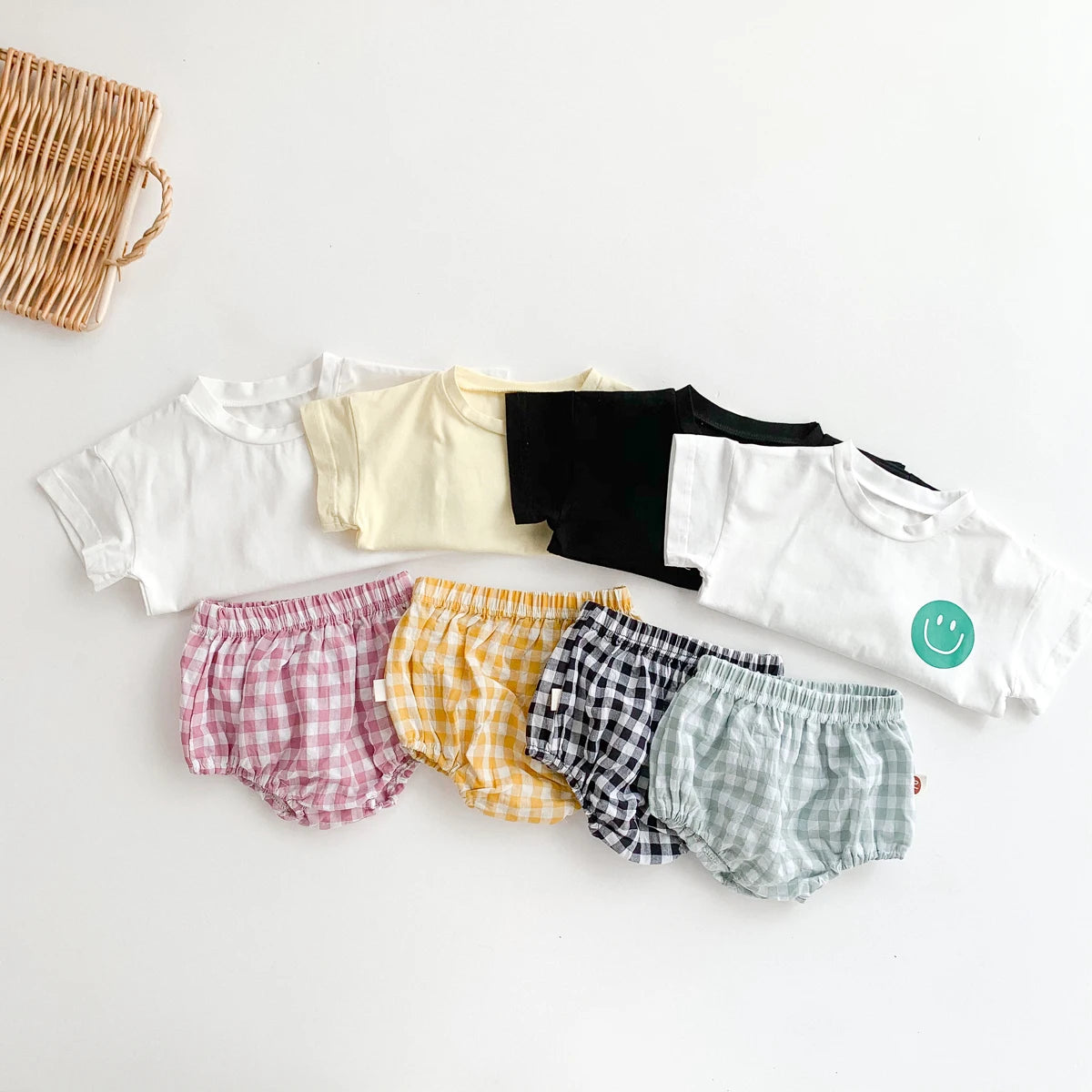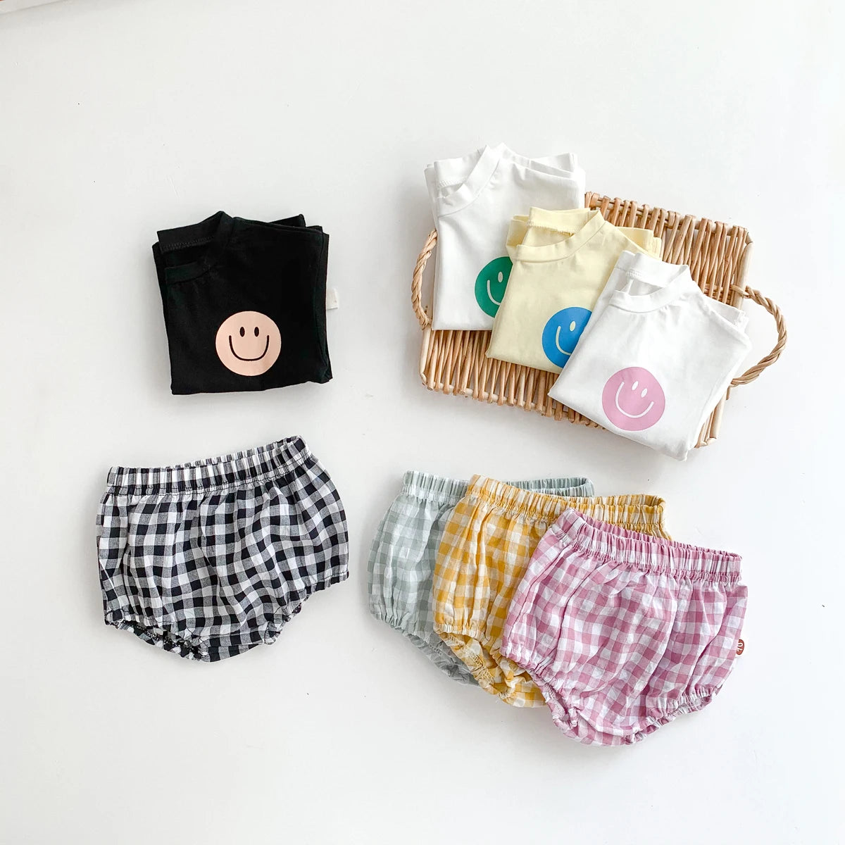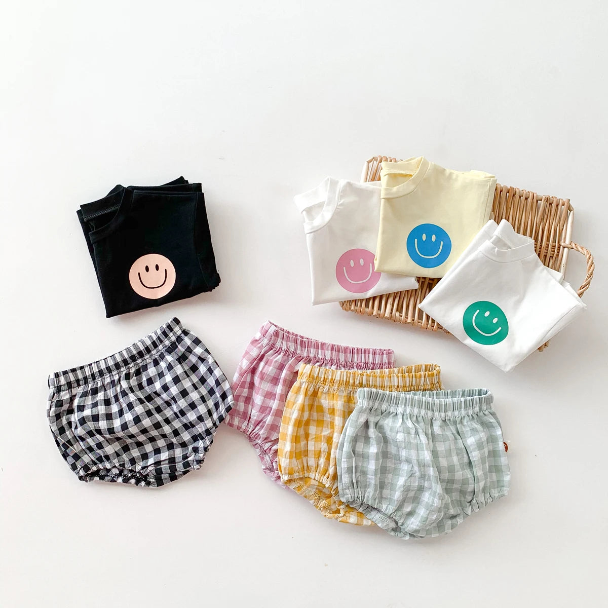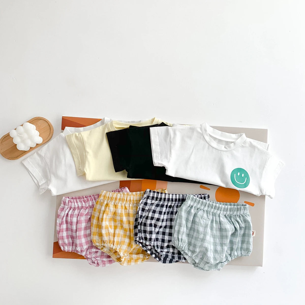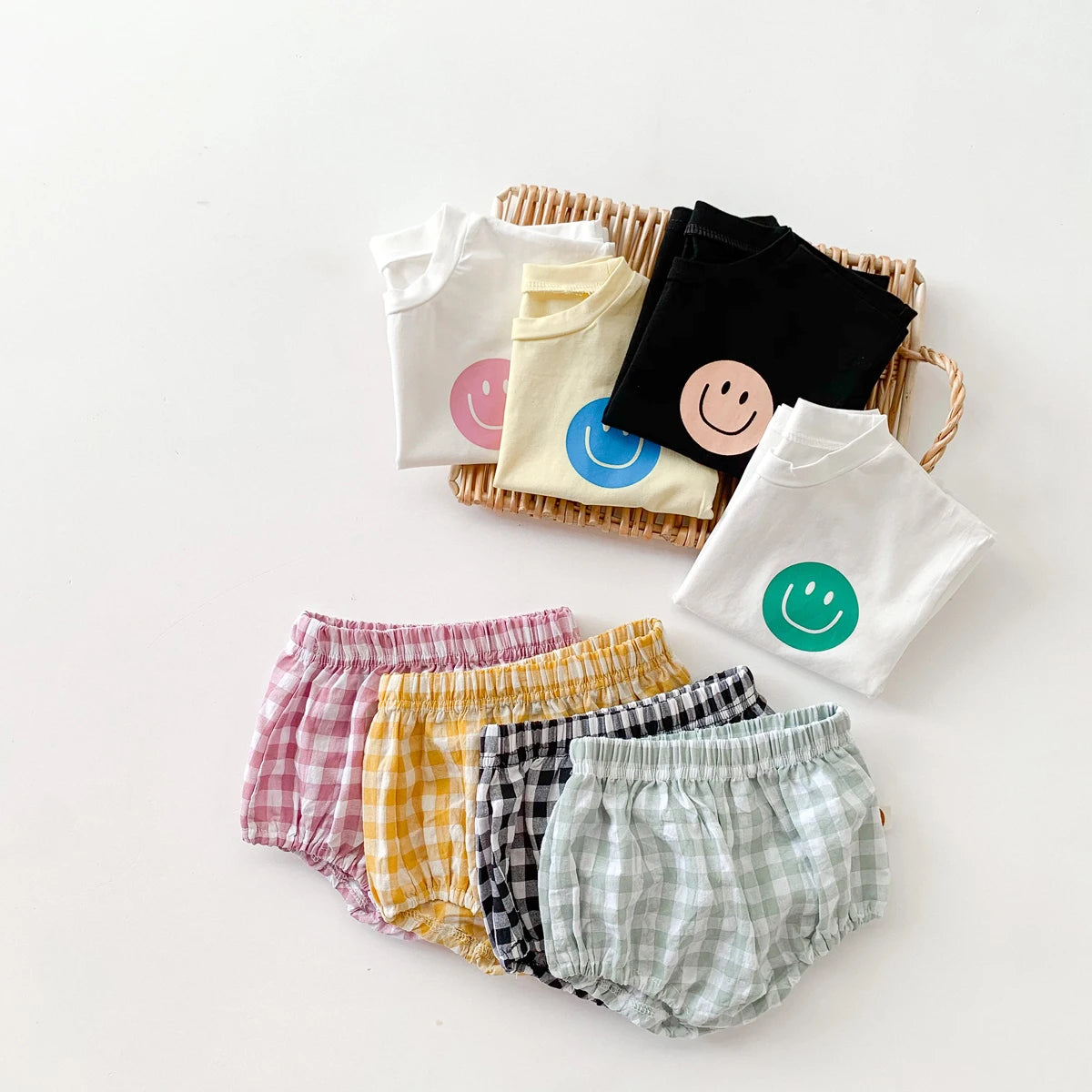 Introducing Our Smile Face Cotton T-shirt + Plaid Shorts Set: Summer Baby Outfit