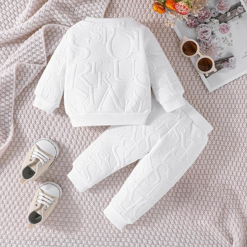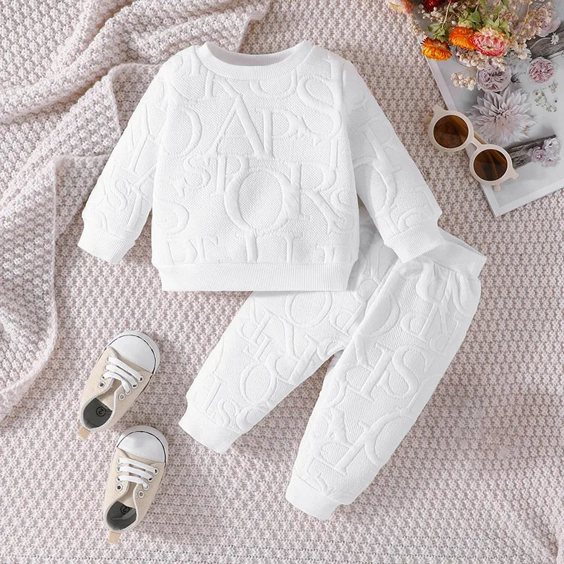 Unmatched Comfort in Every Detail Indulge your baby in the luxurious comfort of our Clothing Sets, meticulously crafted from high-quality polyester. The long-sleeved t-shirt and long pants set ensure a gentle touch against your baby's delicate skin, allowing them to explore the world in comfort and style.