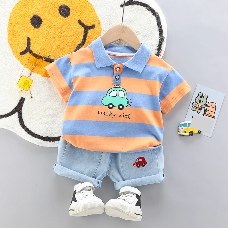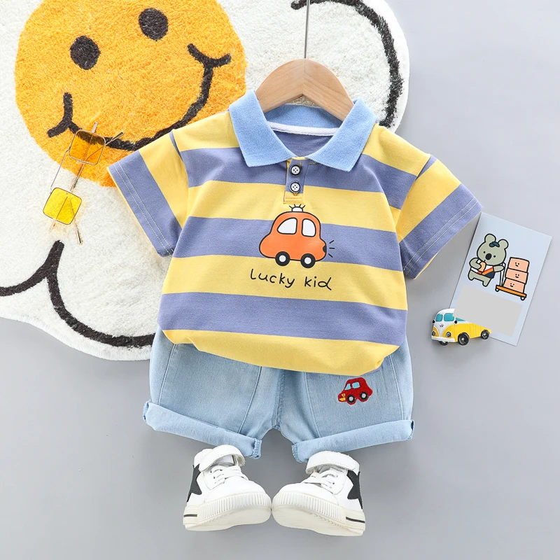 Verschönern Sie den Stil Ihres Kleinen mit unserem Sorgfältig gefertigtes, hochwertiges Baby-Poloshirt- und Jeansshorts-Set. Dieses Set für Jungen im Alter von 12 Monaten bis 4 Jahren ist der Inbegriff von Komfort und Mode für die Sommersaison.