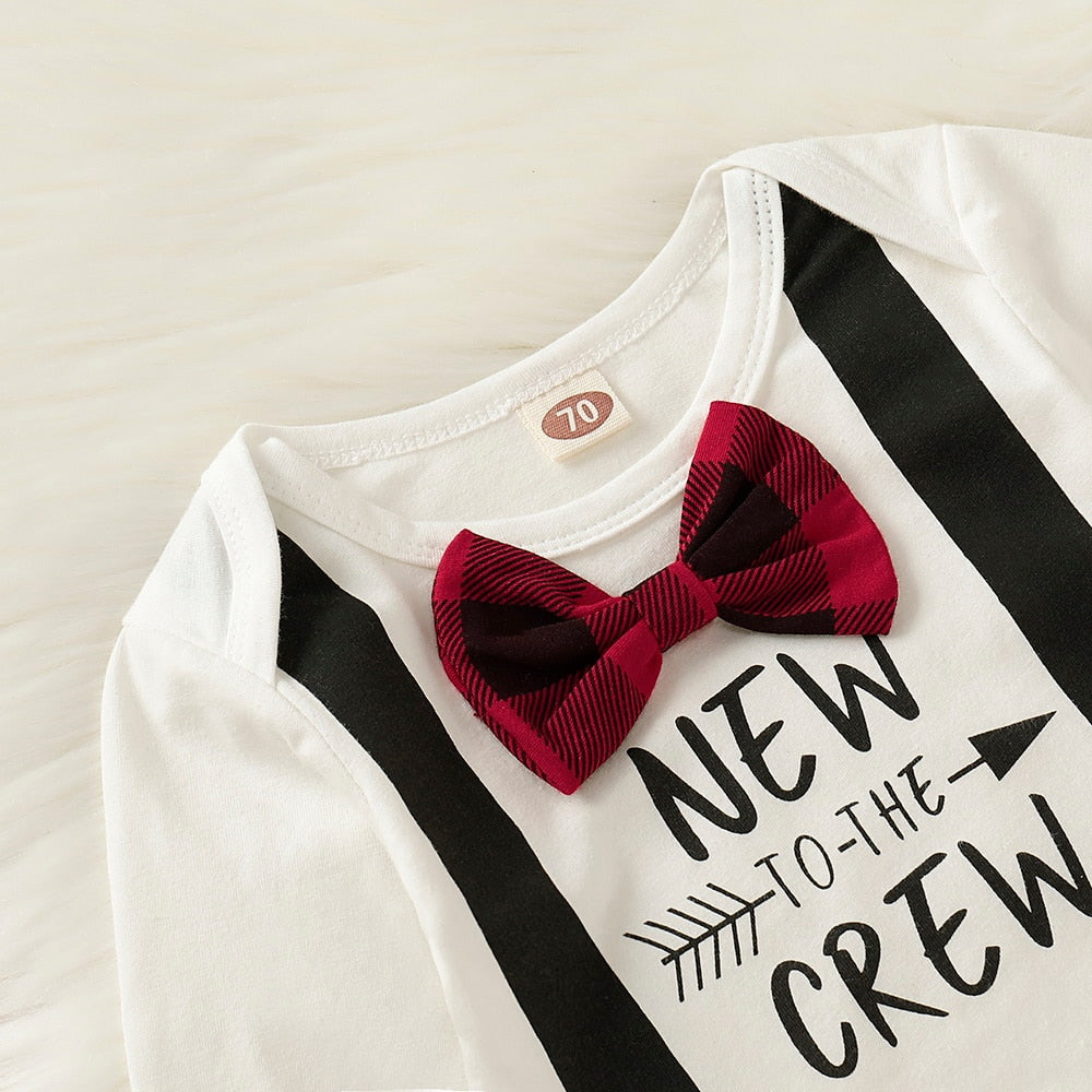 Ihr kleiner Mann wird in diesem neuen Crew Bowtie Romper Set garantiert die Herzen erobern. Komplettes Set mit Mütze für den perfekten Nachbarsjungen-Look. Hält in der kalten Jahreszeit warm oder ist einfach bequem für Spielzeit im Freien.
