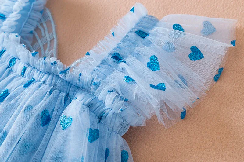 Wir präsentieren das Prinzessinnen-Geburtstagspartykleid von 1Lovebaby: Tüllkleid mit Schleife und Flügeln auf der Rückseite