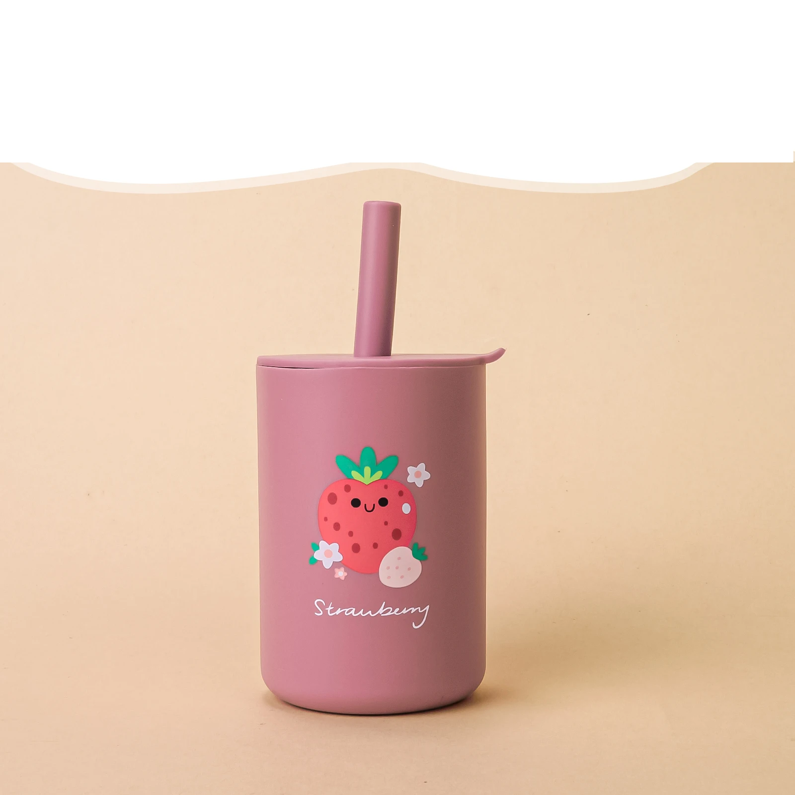Cartoon Straw Cup for Baby - Food Grade Silicone Water Cup for Baby