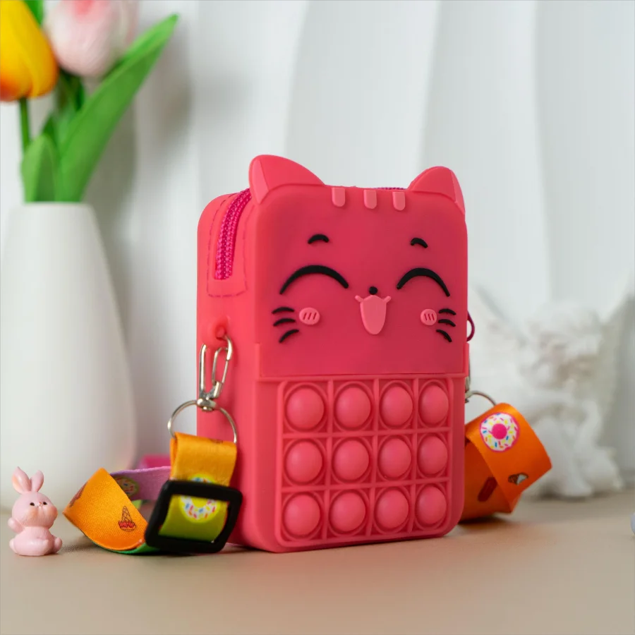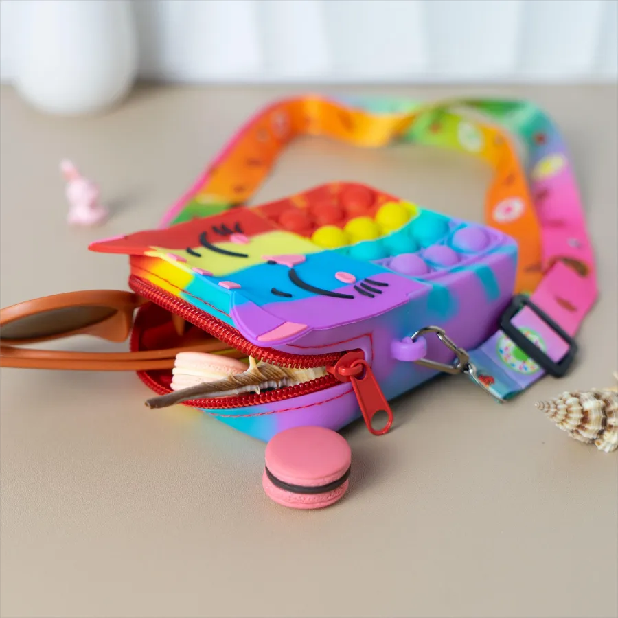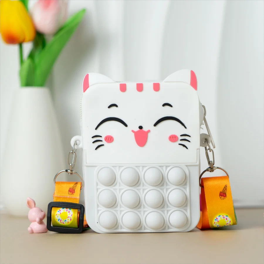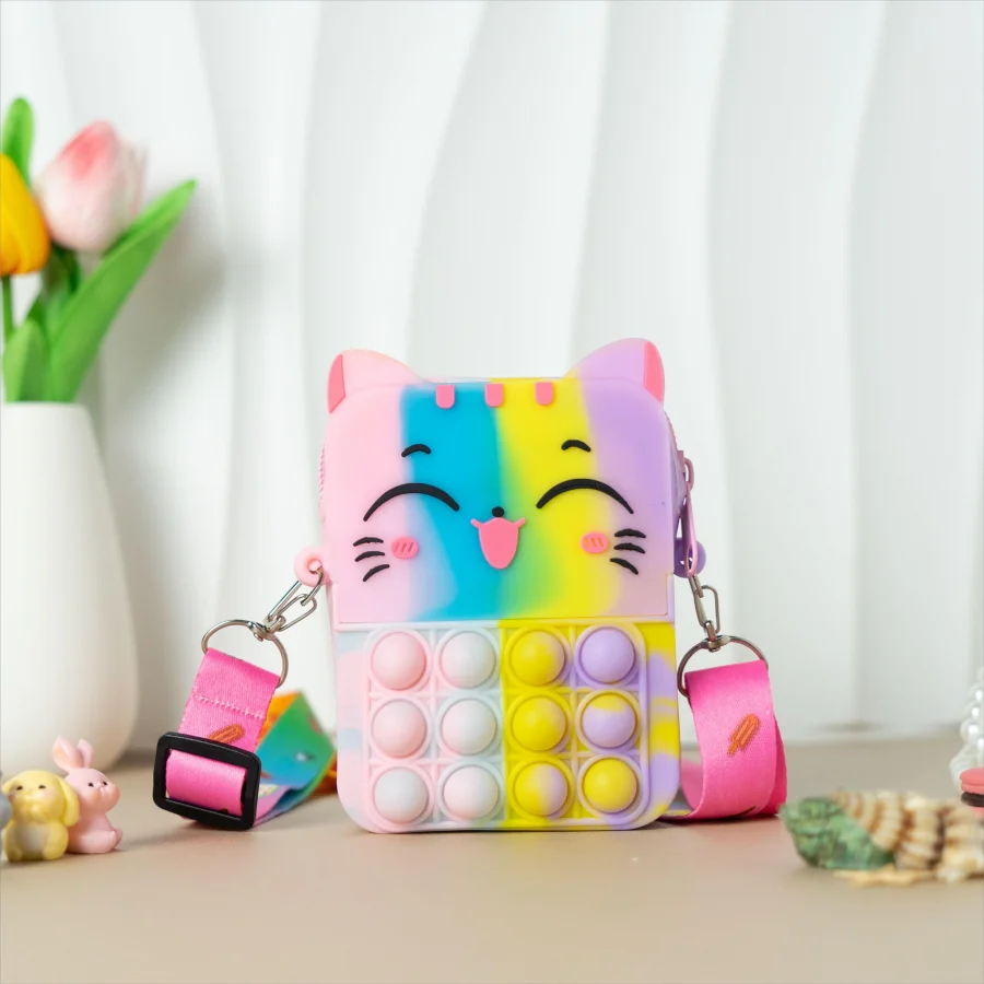 Elevate your little one's accessory game with our charming Cute Cat Messenger Coin Purse. Crafted from high-quality silica gel, this purse is not just a stylish addition but also a practical item for your child.
