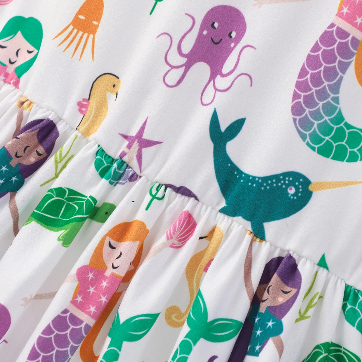 Bezauberndes Meerjungfrauen-Design: Mit seinem bezaubernden Meerjungfrauen-Cartoon-Print verleiht dieses Kleid dem Outfit Ihrer Kleinen einen Hauch von Verspieltheit und Fantasie und lässt sie sich wie eine Meerjungfrauenprinzessin fühlen.