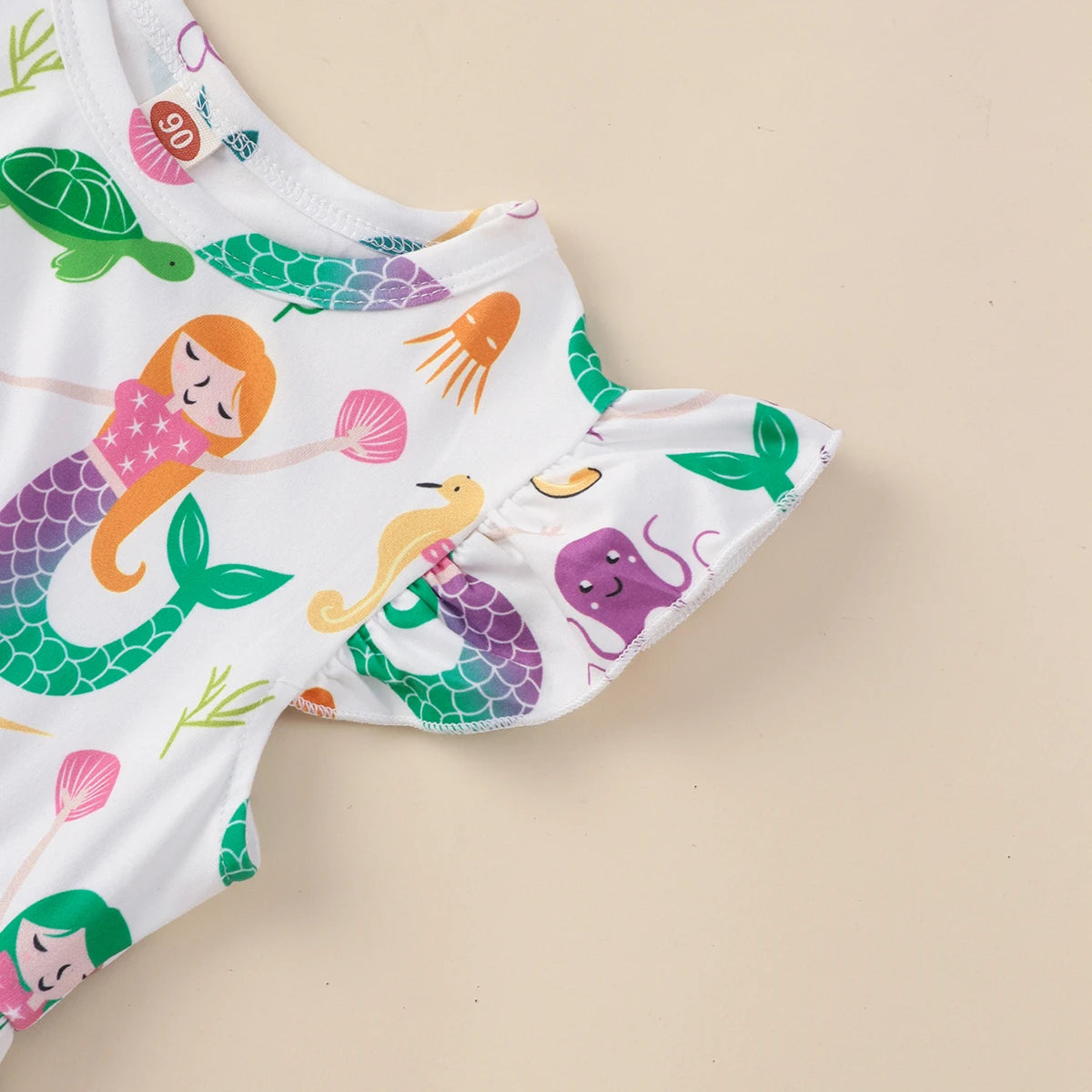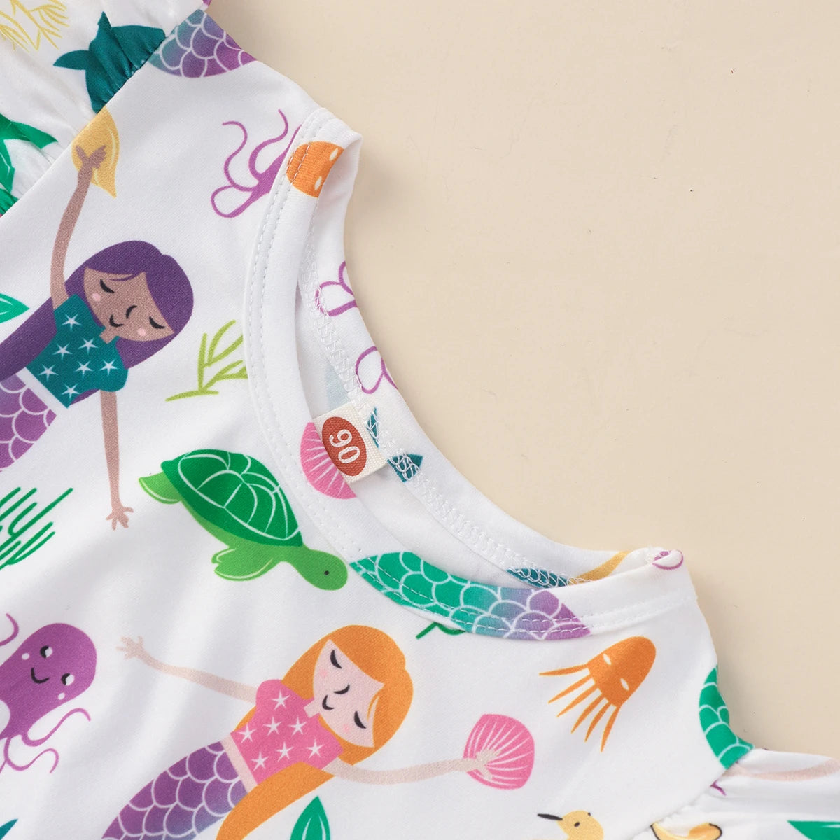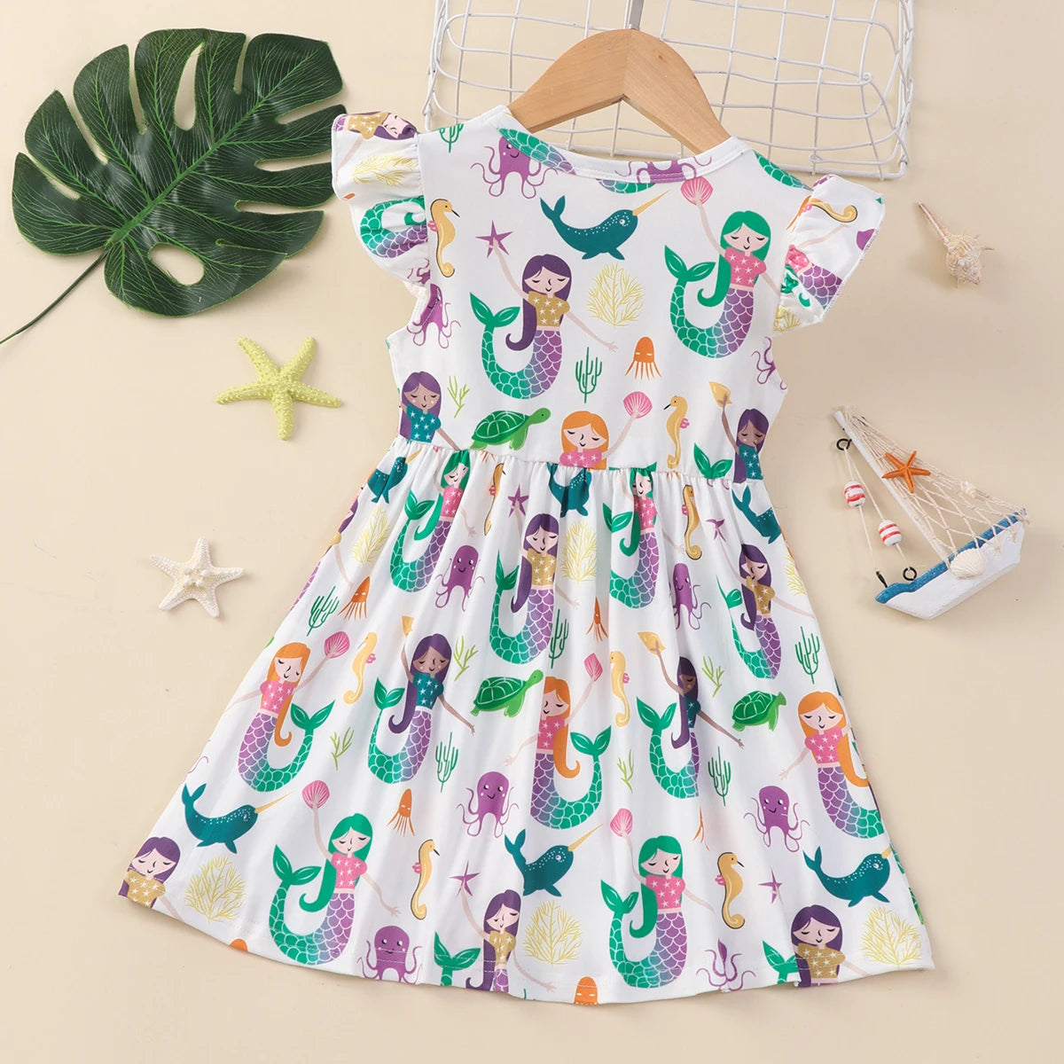 Meerjungfrau-Cartoon-Sommerkleid: Rüschen-Kinderkleider aus Baumwolle