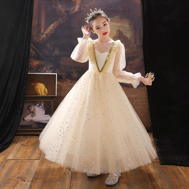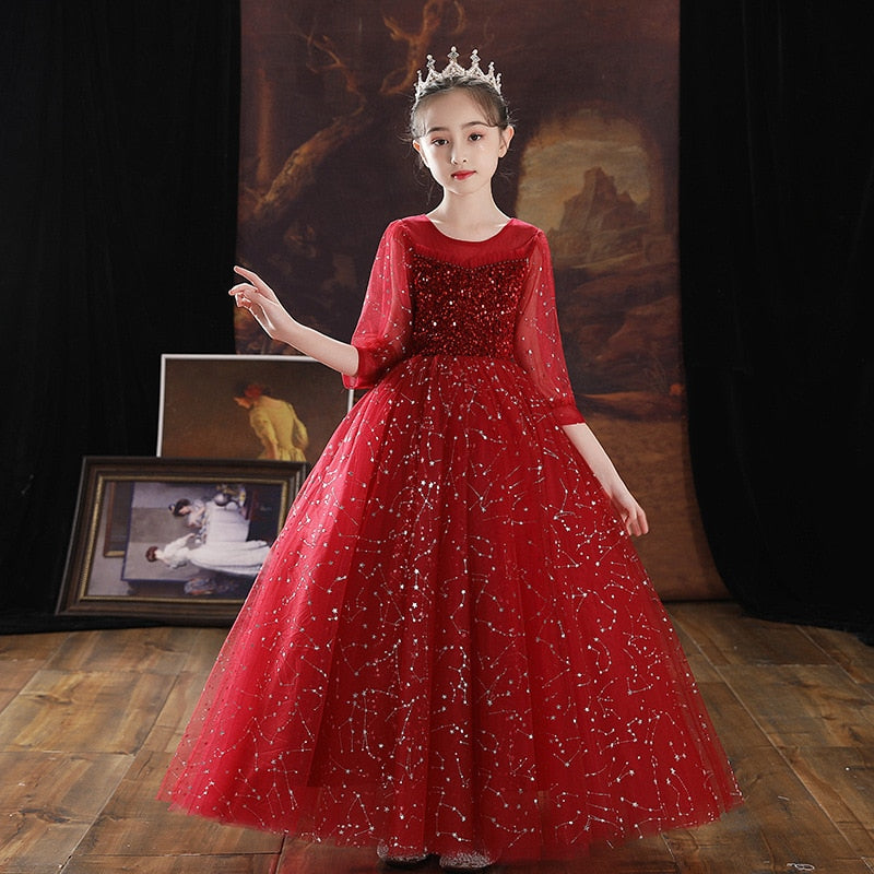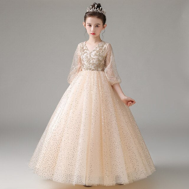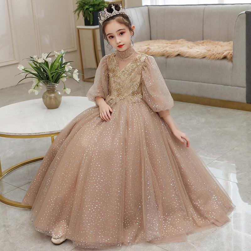 Finding the perfect gown for your little girl can be overwhelming whilst here's our Puff Sleeve Sequin Embroidered Top A-line Gown that perfectly defines what simplicity and elegance are all about. Exquisite formal fashion wear for girls for that picture-perfect celebration on her special day.
