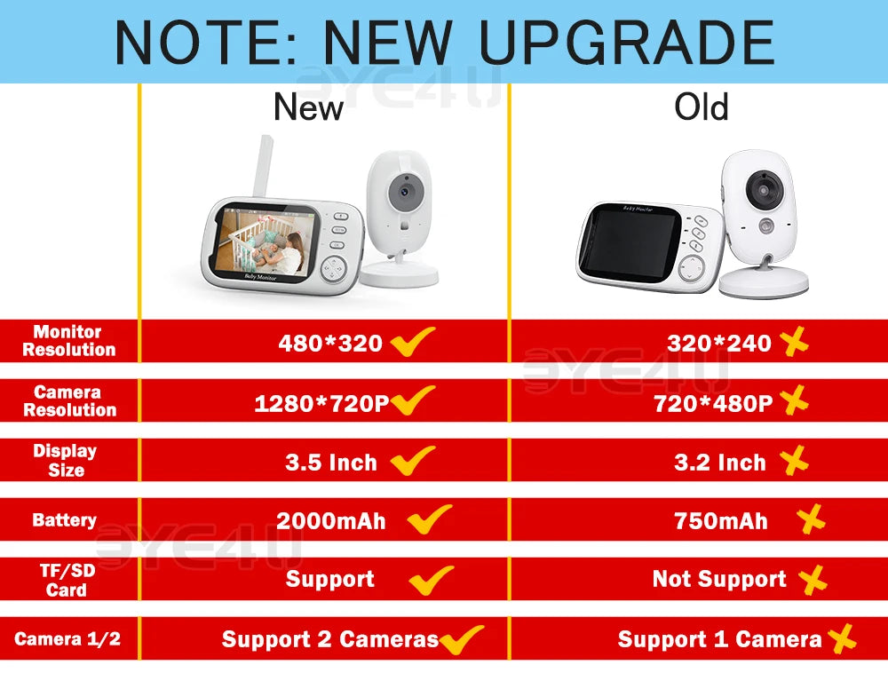 👶 3.5'' Screen: The high-resolution 3.5-inch color display offers a clear and vivid view of your child's activities, providing you with a close watch over them.
