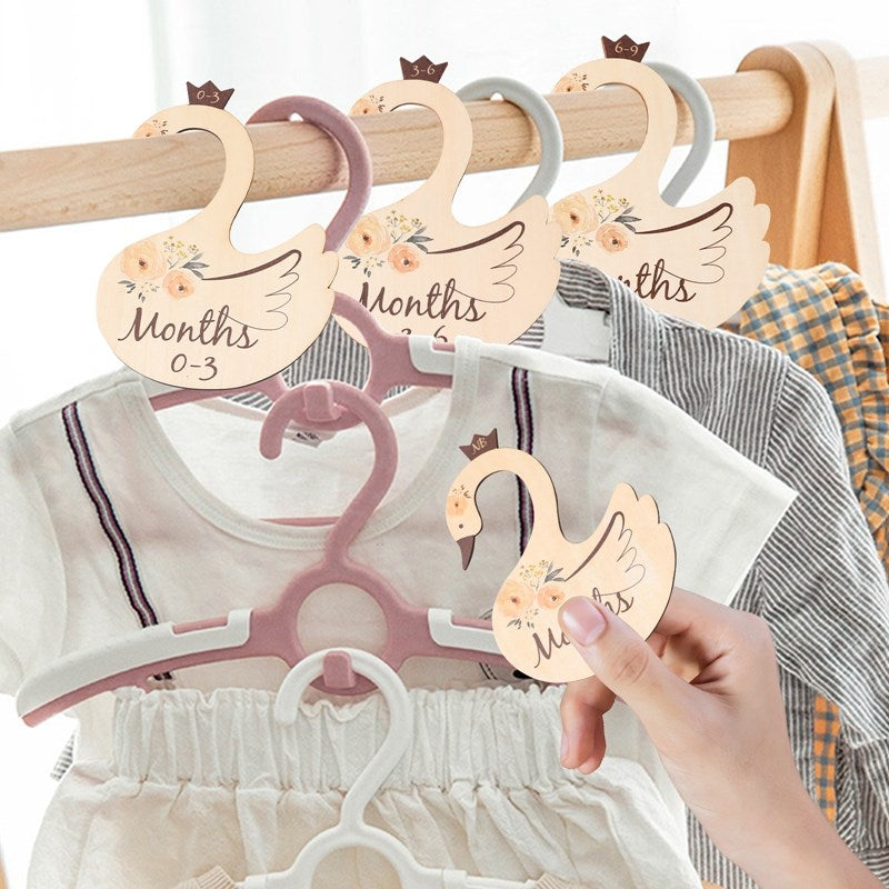 Separadores de Closet para Bebé – Set de Madera con Cisne de Caricatura