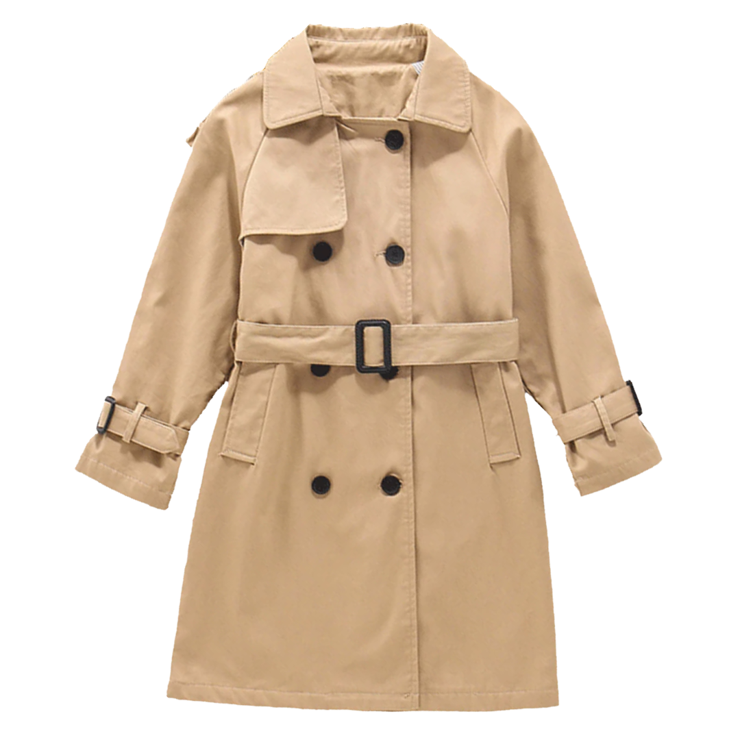 Dieser braune modische Trenchcoat mit langen Ärmeln ist ein Klassiker für Kinder in coolem Braun mit zeitlosem Charme. Er hat eine geknöpfte Vorderseite, fallende Revers und einen verstellbaren Gürtel für die perfekte Passform.