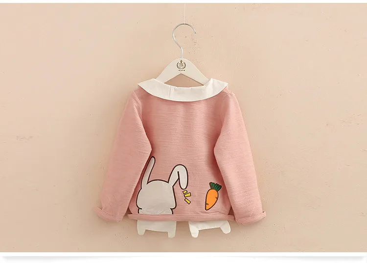 Dieser Pullover mit Karotten-Hasen-Cartoon-Patchwork-Design besteht aus Baumwolle und Polyester und ist ideal für die kalte Jahreszeit geeignet. Es handelt sich um einen langärmeligen Pullover mit Kragen, der dafür sorgt, dass sich Ihr kleines Mädchen warm fühlt. Dieser Pullover hat ein Hasen- und Karotten-Patchwork-Design, das ihn besonders niedlich und liebenswert macht.