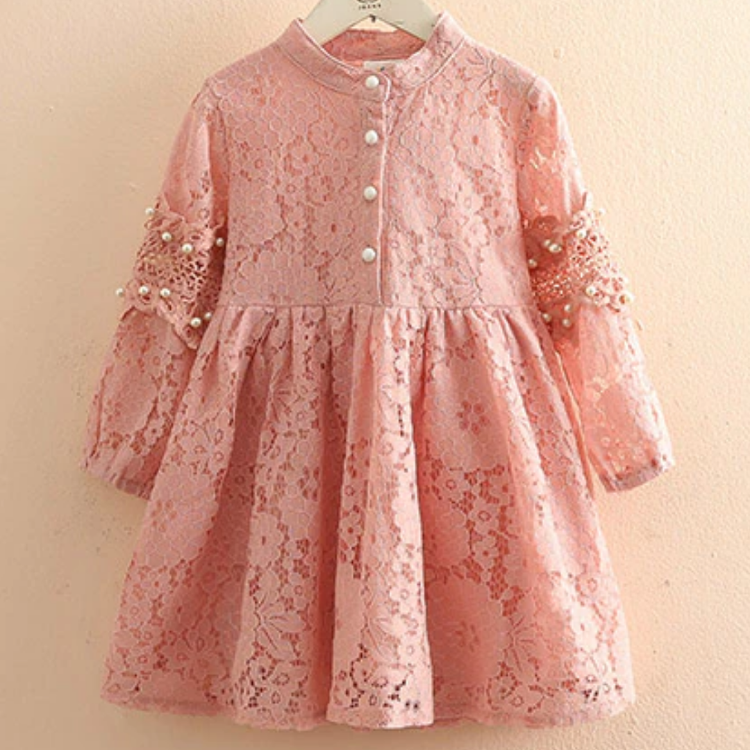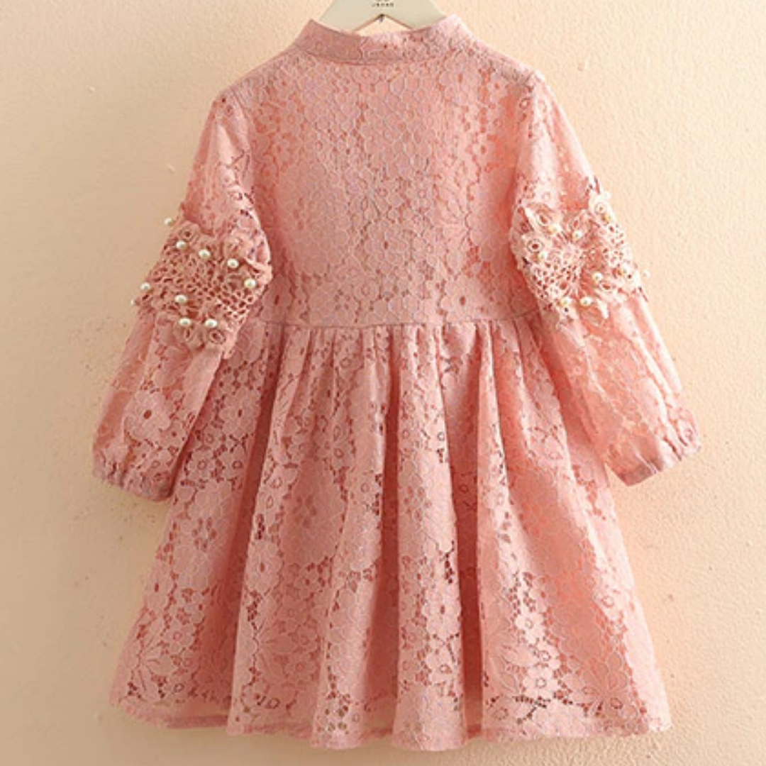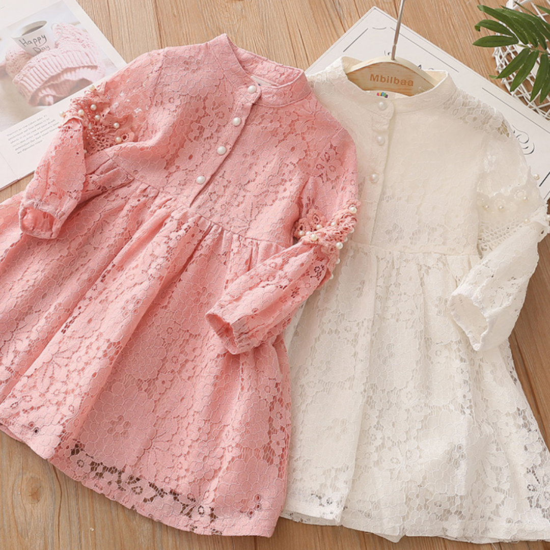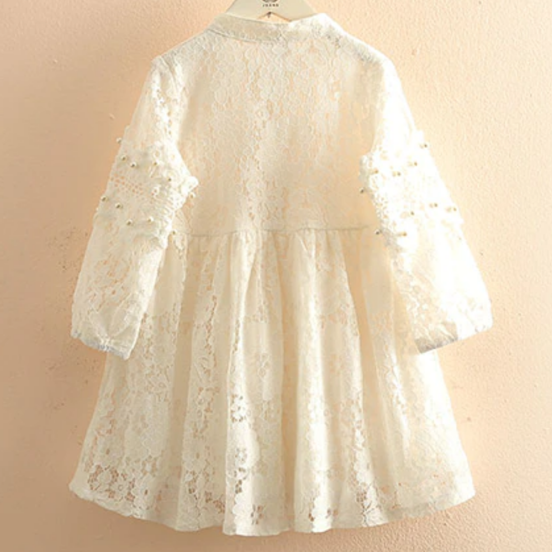 Dieses klassische Kleid mit floraler Spitze und langen Ärmeln ist das perfekte Outfit für süße und natürliche Portraitfotos von Mädchen im Garten oder an Orten mit wunderschöner Naturkulisse. Es ist leicht, hautfreundlich und den ganzen Tag angenehm zu tragen.