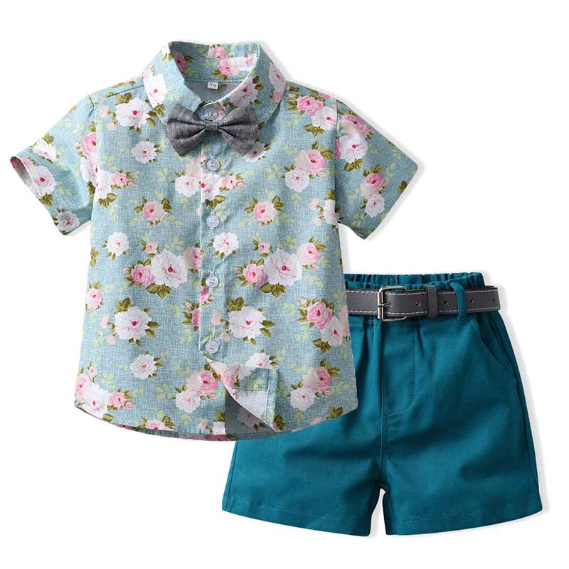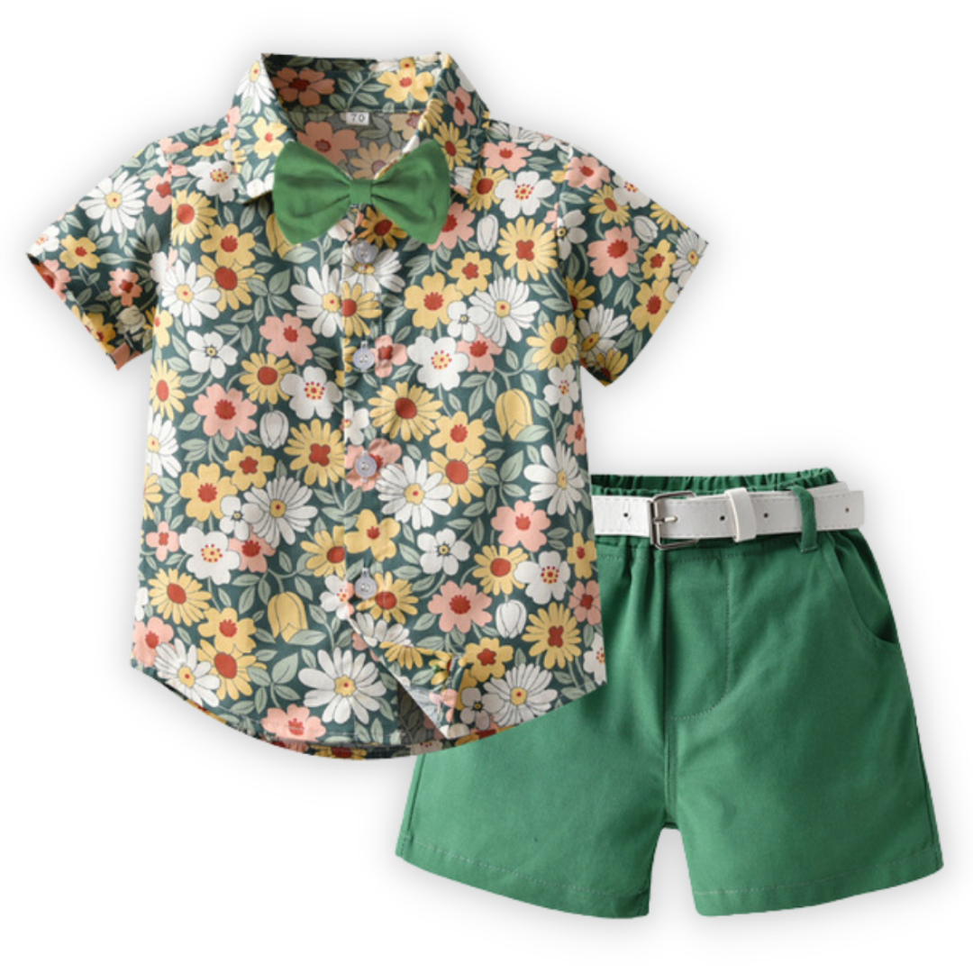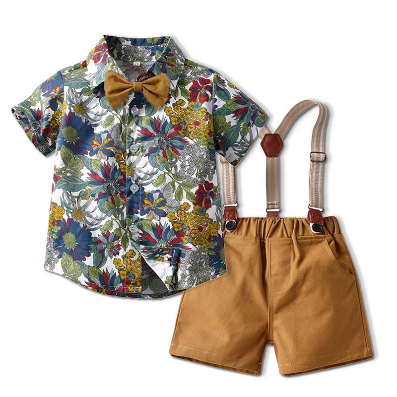 - 4-teiliges Set für Jungen: Hemd, Hose, Hosenträger und Fliege.