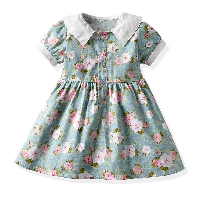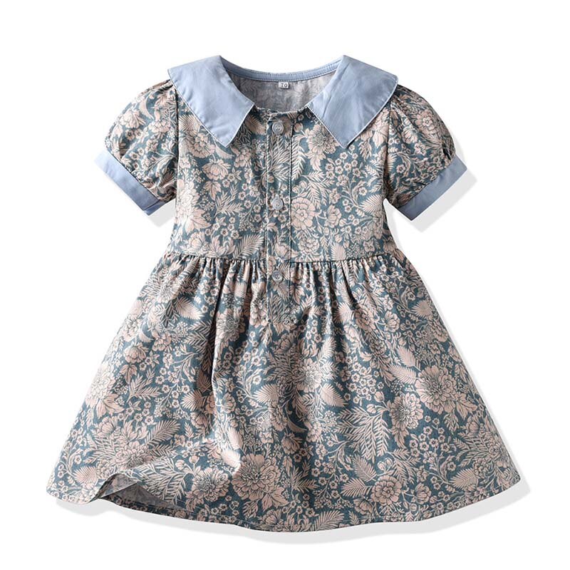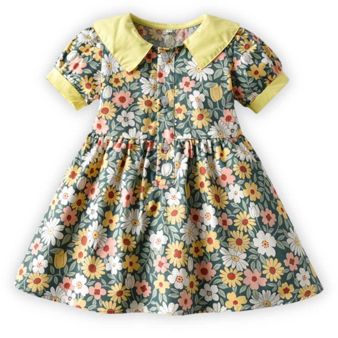 - Kleid für Mädchen mit Umlegekragen und Puffärmeln.