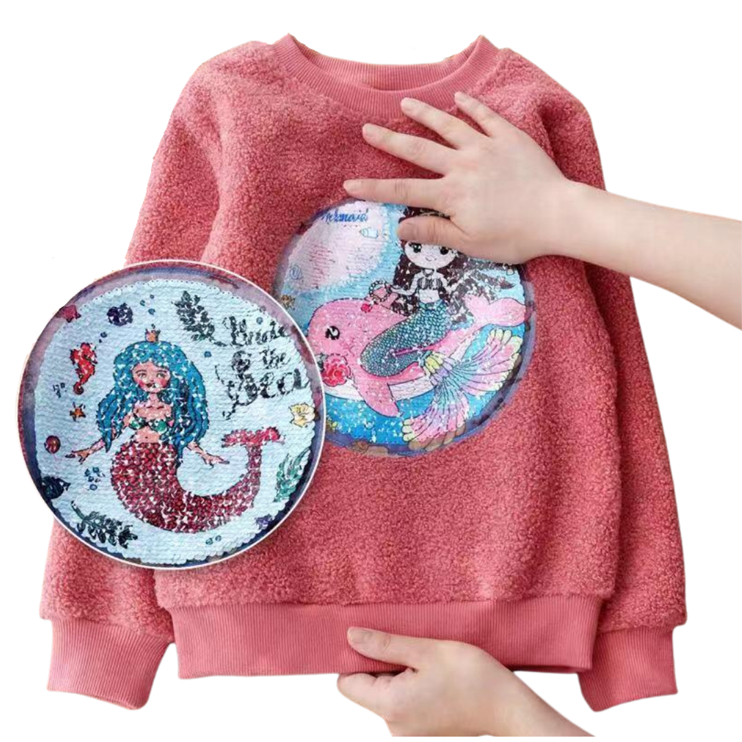 Dieser Design Changing Sequin Print Mermaid Sweater besteht aus Baumwolle und Kaschmir, daher ist er bequem und gemütlich zu tragen. Es ist ein Meerjungfrau-Pullover mit Pailletten-Print und niedlichen, farbwechselnden Pailletten, der Ihr Mädchen aus der Menge hervorstechen lässt.