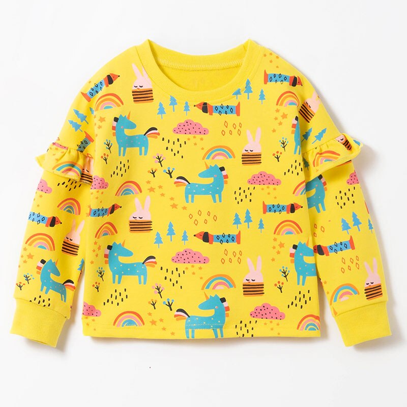Dieser Sweater mit Dinosaurier-Print ist speziell für Ihren kleinen Engel entworfen. Dieses einzigartige Design hat einen farbenfrohen Dinosaurier-Print, der diesem Pullover einen besonderen Look verleiht. Er besteht aus Baumwolle, damit Ihre kleine Tochter in der kalten Jahreszeit warm bleibt.
