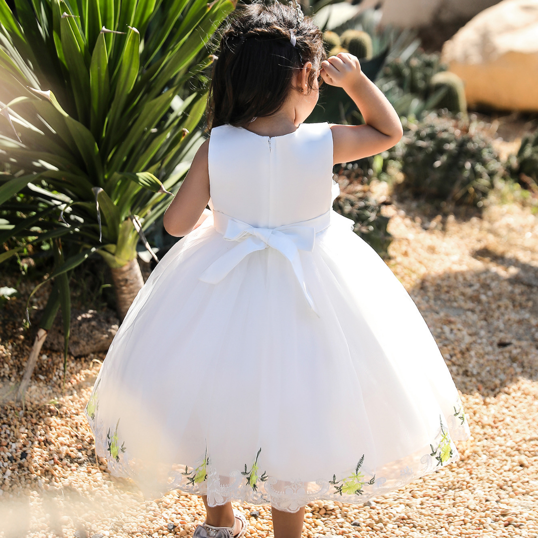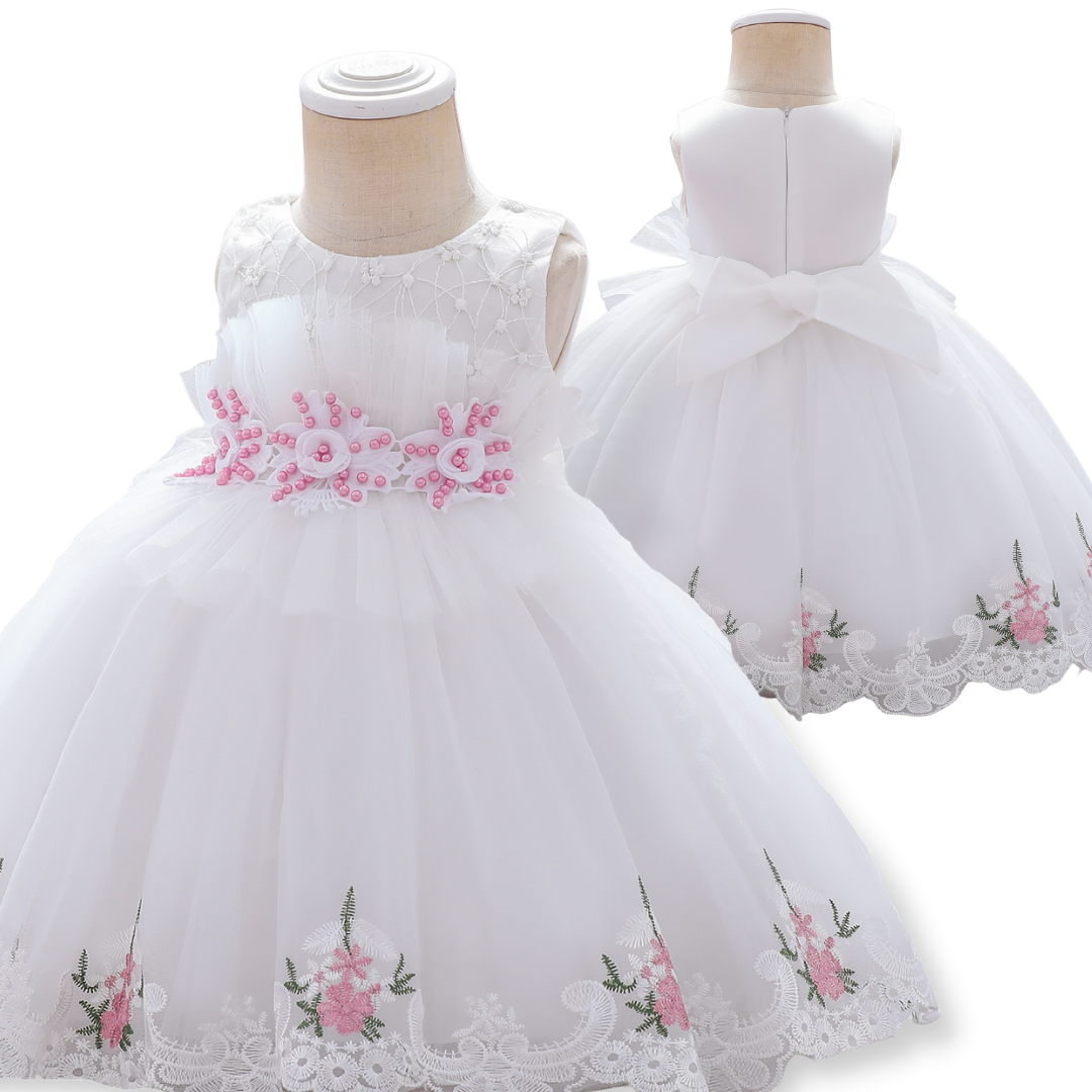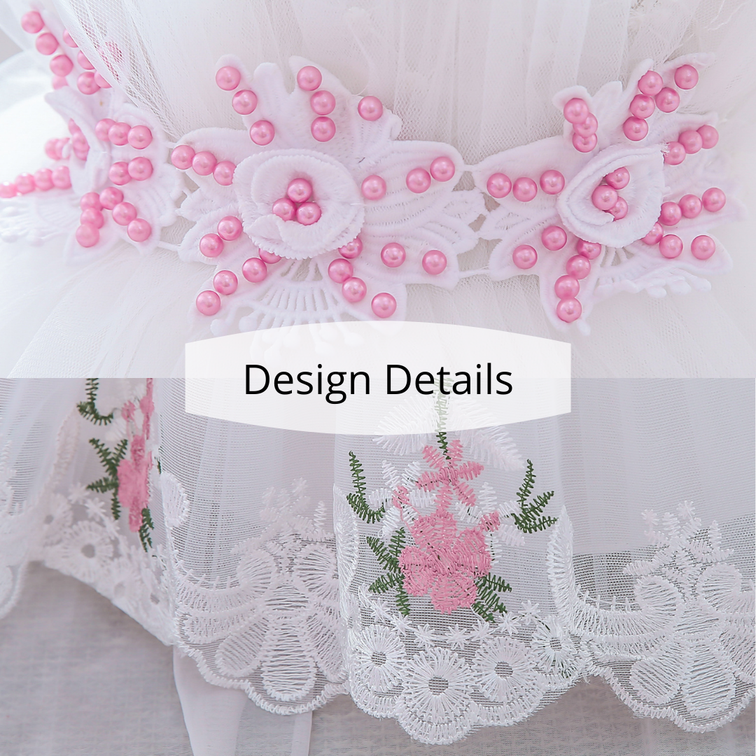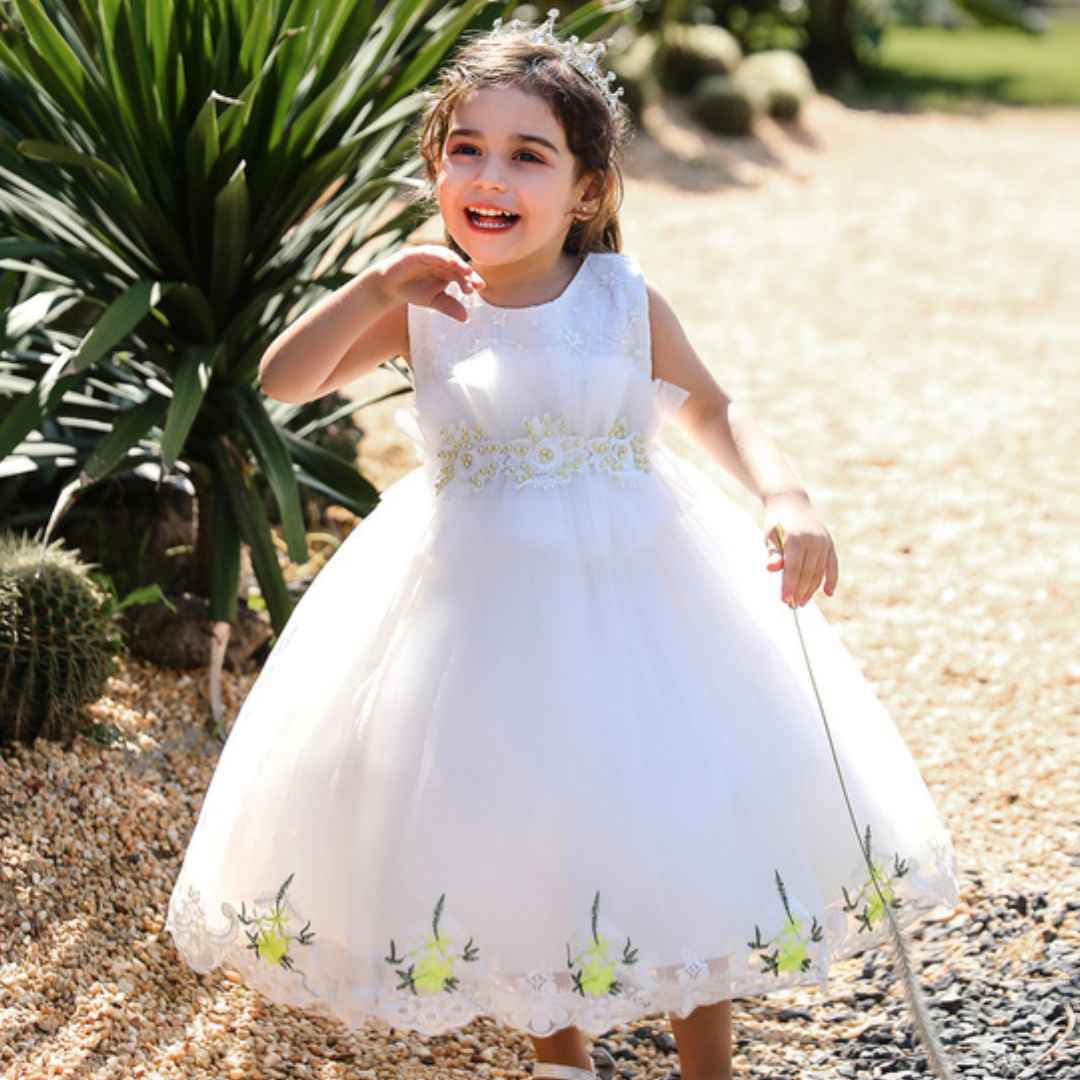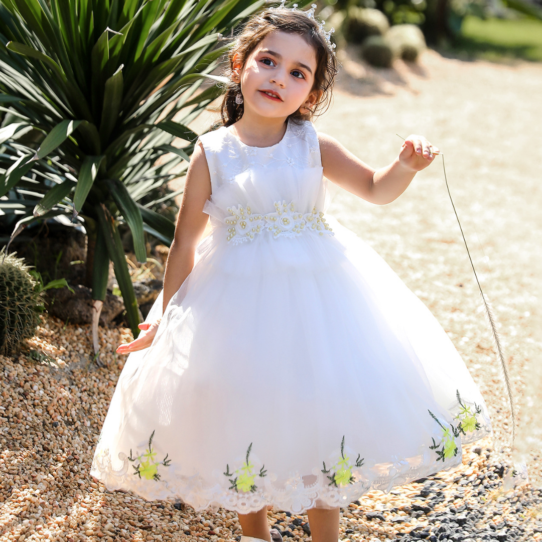 Florale und Spitzenapplikationen sind beliebte Mode-Elemente bei Partykleidern. Dieses Stickerei-Spitzenkleid mit floralen Applikationen im Prinzessinnen-Stil ist eine gute Wahl, die kleine Prinzessinnen bei ihrem nächsten großen Event gerne tragen werden. Das Kleid ist nicht nur bequem und weich, sondern auch leicht und einfach über längere Zeiträume zu tragen.