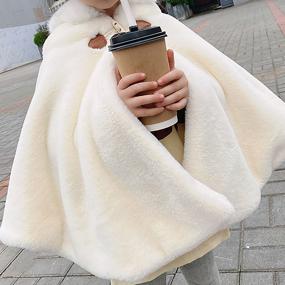 Dieser kurze Umhang mit Kapuze und falschem Pelzkragen ist graziös und elegant. Dieser Mantel besteht aus weichem Stoff mit Pelzfutter an der Kapuze. Er ist eine tolle Ergänzung für die Wintergarderobe Ihres kleinen Mädchens.