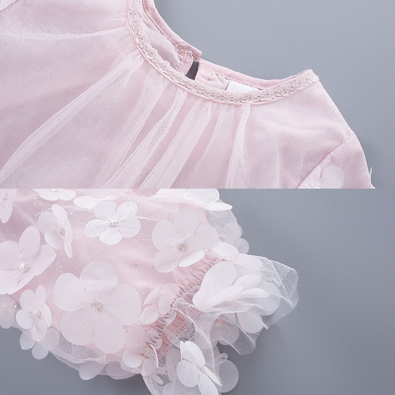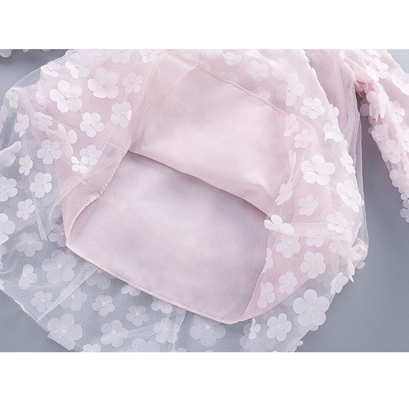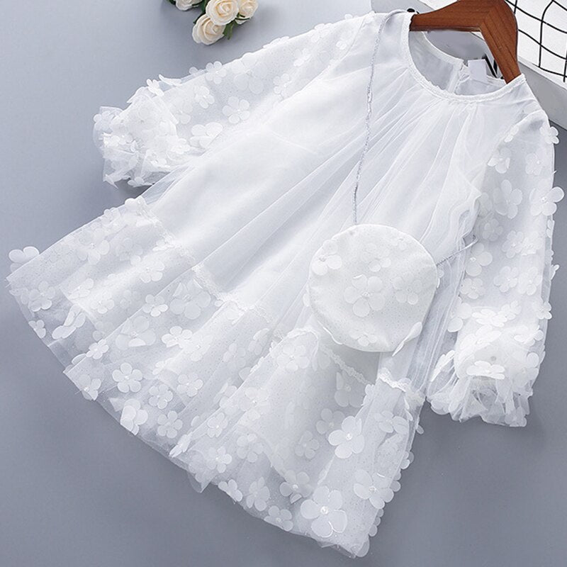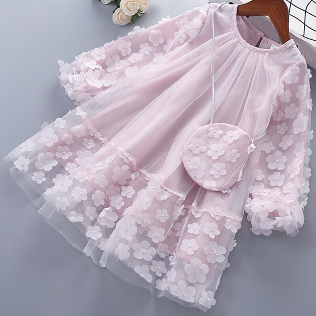 Es ist der Traum eines jeden Mädchens, eine Prinzessin zu sein! Dieses Mädchenkleid aus Mesh mit Blumenmuster, mehreren Lagen und langen Ärmeln ist wunderschön und perfekt für fröhliche Tage. Mit passender Tasche fühlt sie sich wie eine echte Prinzessin – noch schicker als ihre Lieblingsfigur.