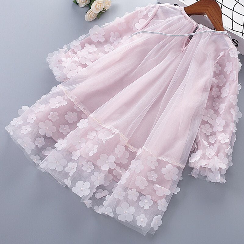 Платье-сетка для девочек с цветочным принтом и многослойными длинными рукавами