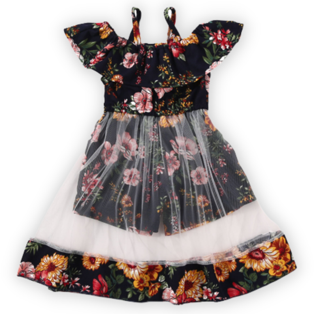 Dieses Blumen-Innen-Romper-Kleid mit durchsichtigem Rock ist das perfekte Sommerkleid für Mädchen. Ein attraktives Sommer-Outfit für Ihre Prinzessin. Bequemes Party-Sommer-Outfit für Mädchen.