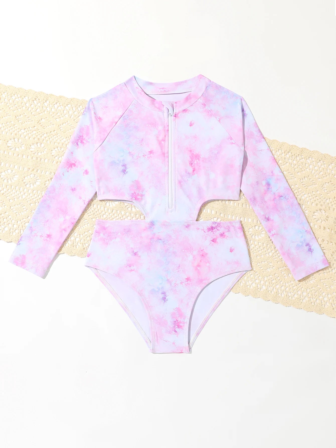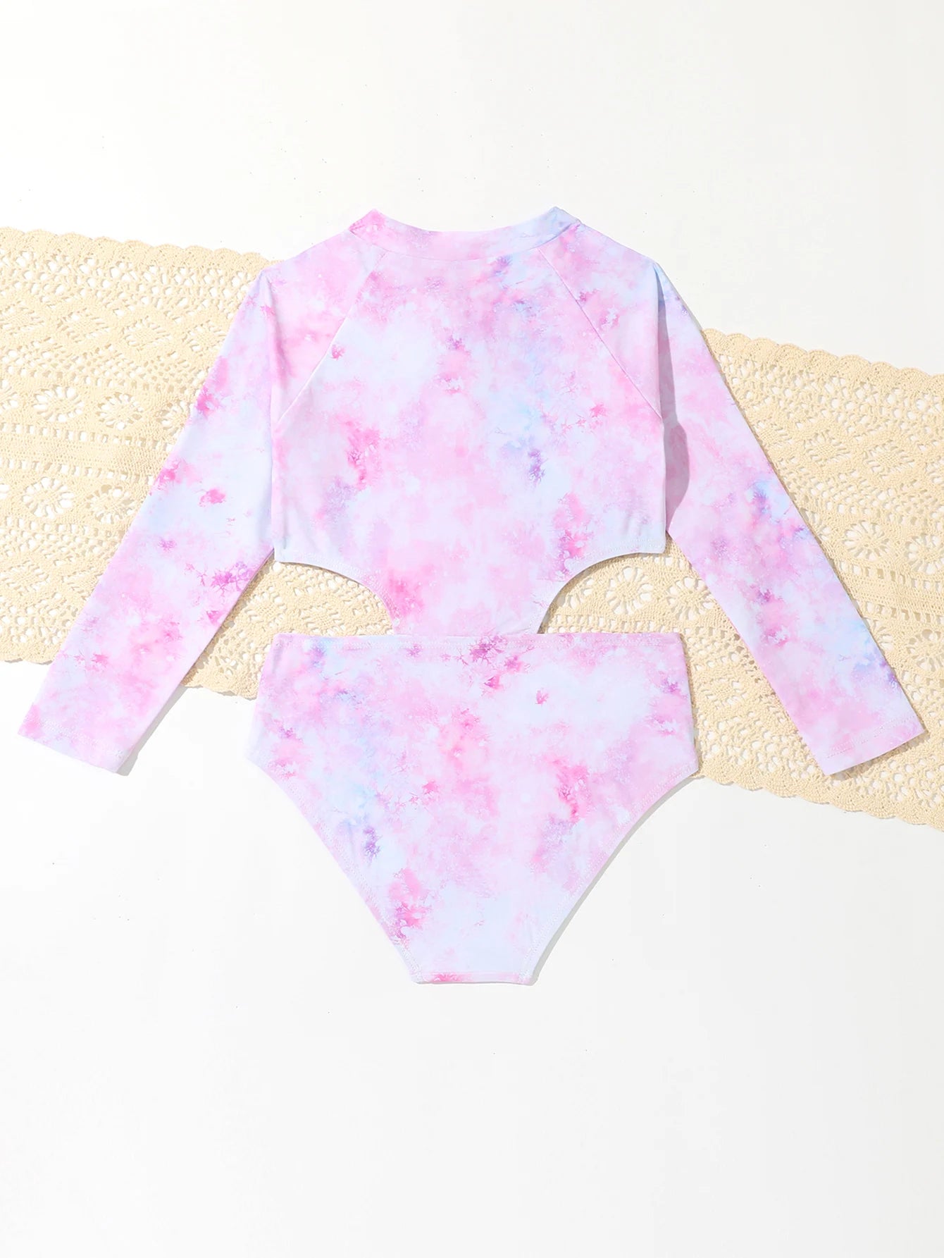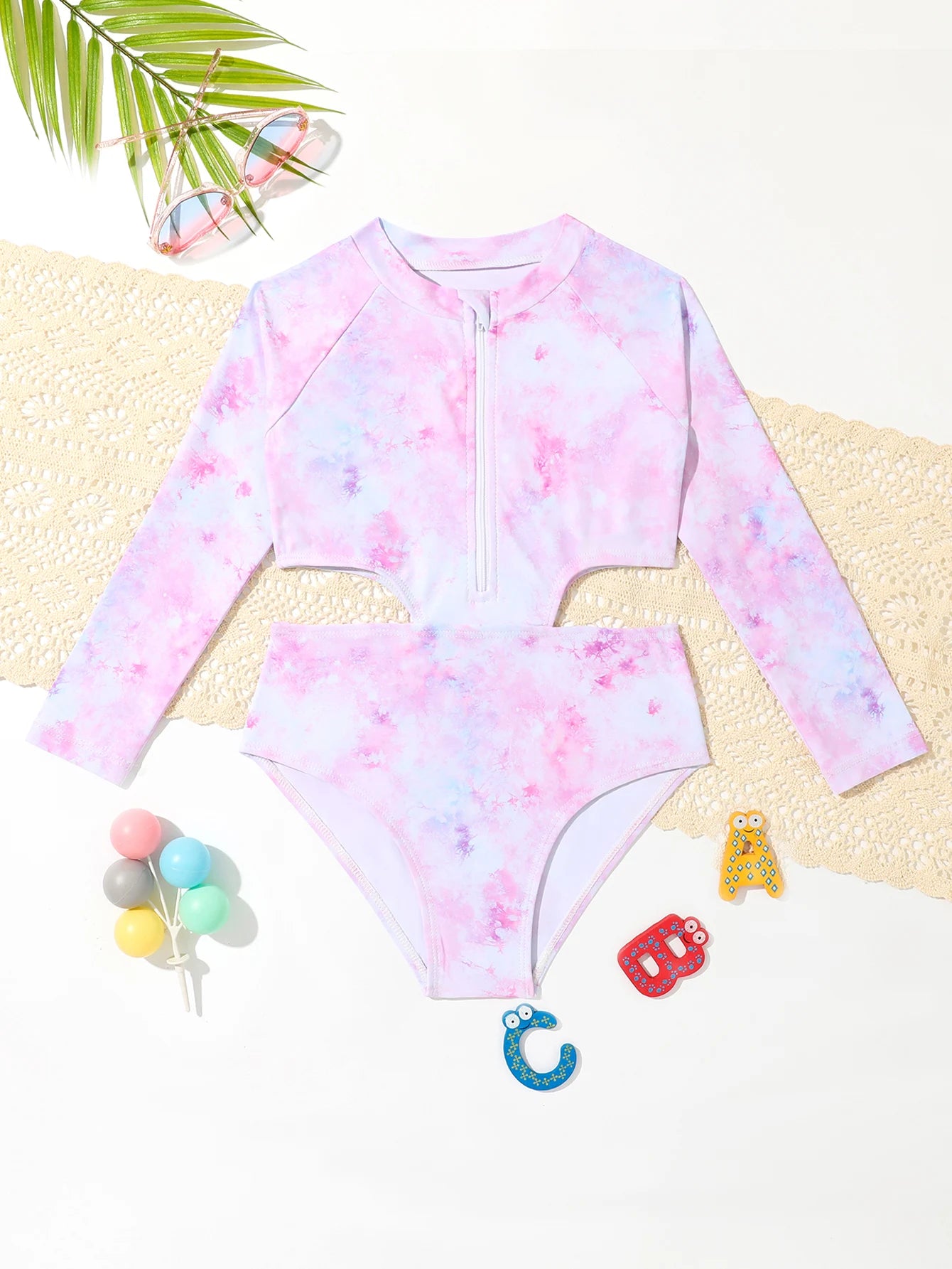 Girl's Long-Sleeved Tie-Dye One-Piece Swimsuit