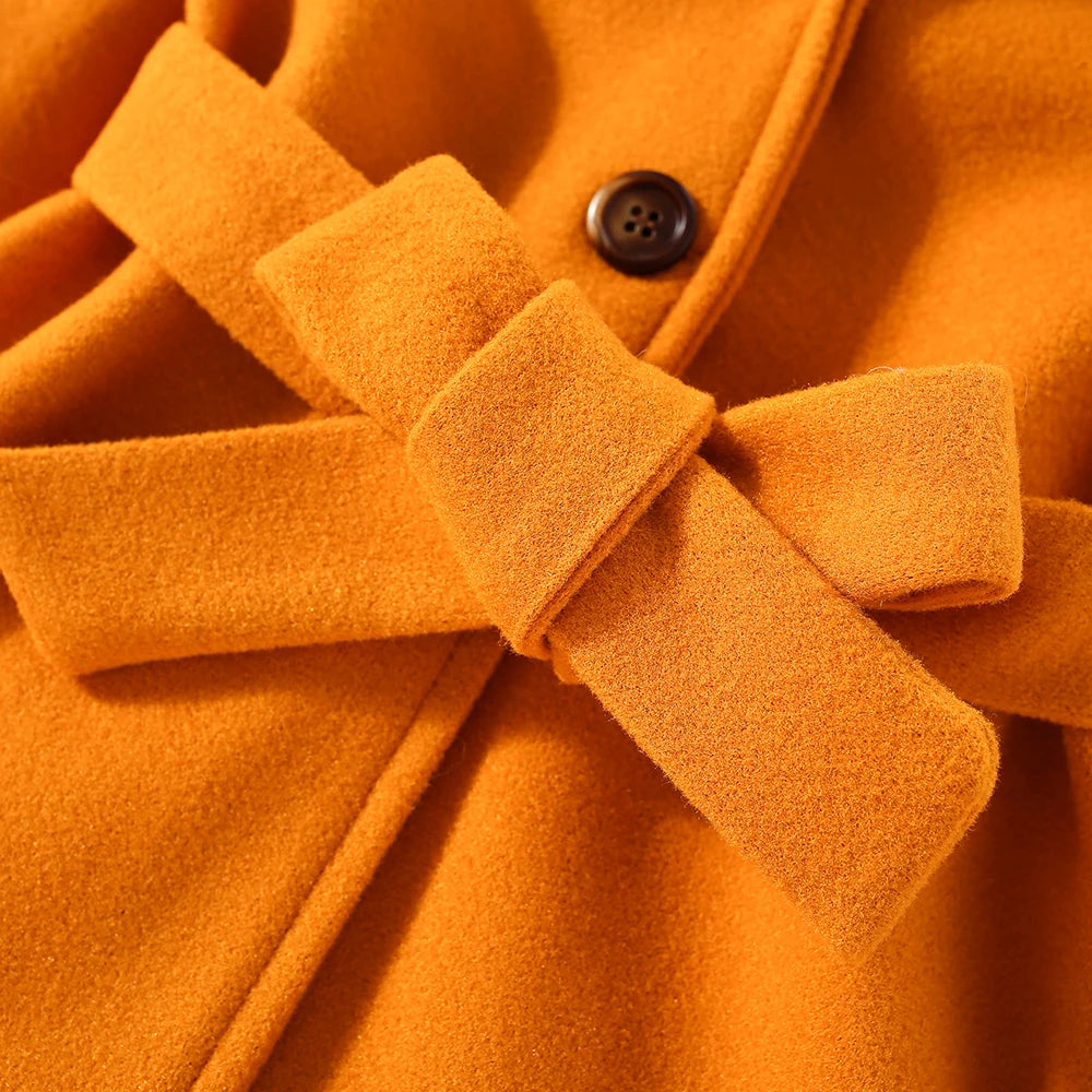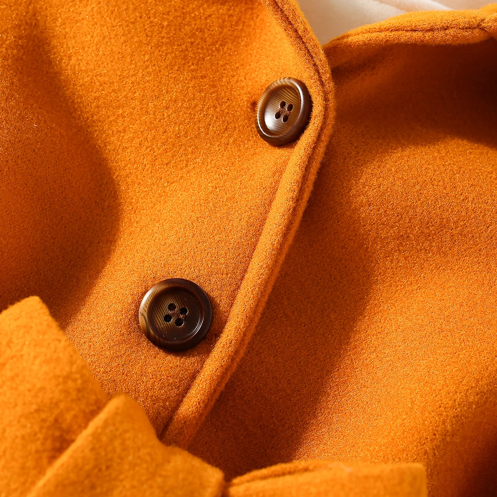 Genießen Sie die bezaubernde Kombination aus Stil und Komfort mit unserem Wollmantel für Mädchen. Dieses exquisite Stück im europäischen und amerikanischen Stil sorgt dafür, dass Ihre kleine Fashionista auffällt.