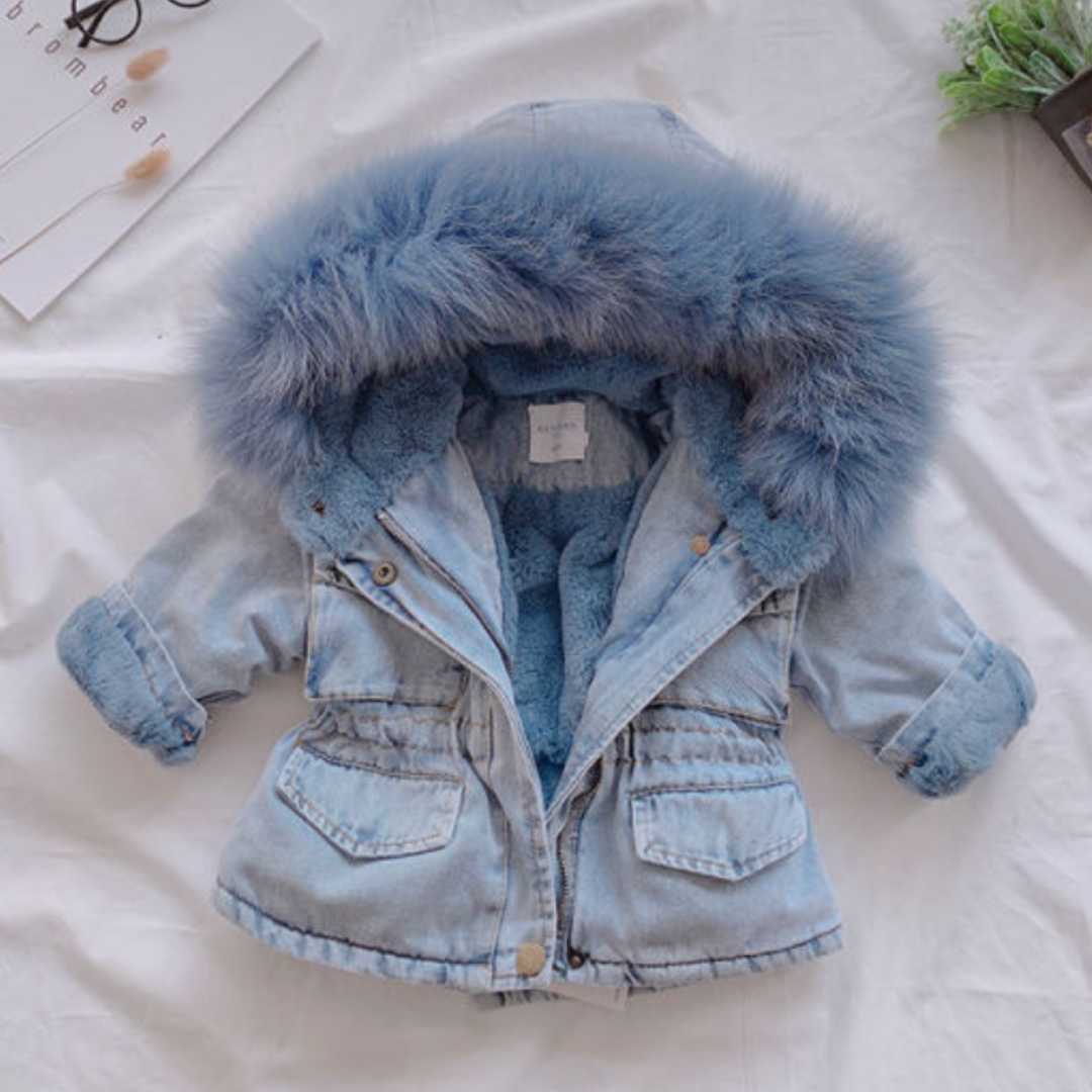 Der Winter ist eine der besten Jahreszeiten, um stilvoll und modisch zu sein. Lassen Sie Ihre kleinen Mädchen modisch gestylt sein und gleichzeitig vor der Kälte geschützt mit dieser Kapuzen-Jeansjacke mit Fell.