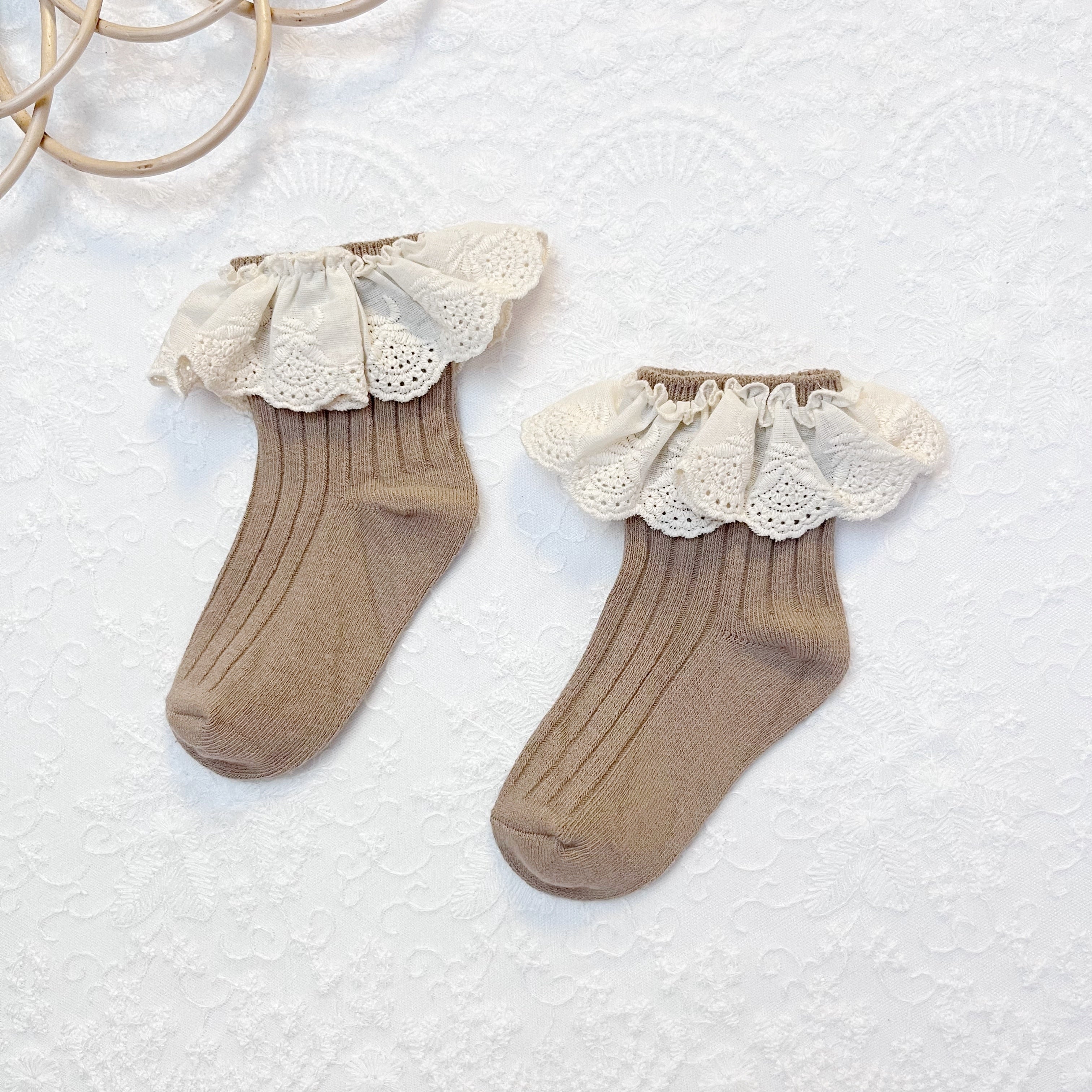 Children's socks with lace are extremely cute for babies, making funny socks to help them become more lovely and pretty. With 100% Cotton material, that means you can use it for your baby at any time of spring, summer, autumn, and winter.