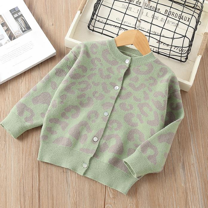 Dieser Cardigan-Pullover mit Leopardenmuster ist warm und besteht aus hochwertiger Baumwolle. Der Pullover hat einen süßen Stil, der Ihre Kinder modischer und niedlicher aussehen lässt.