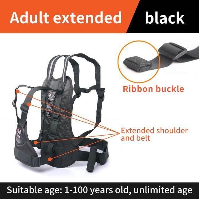 4. Eltern setzen wie mit einem Rucksack die Schulterriemen auf, und los geht's!