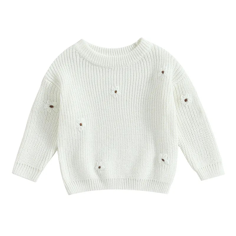 Wir präsentieren unseren Winterblumenpullover für Neugeborene – einen herbstlichen Strickpullover