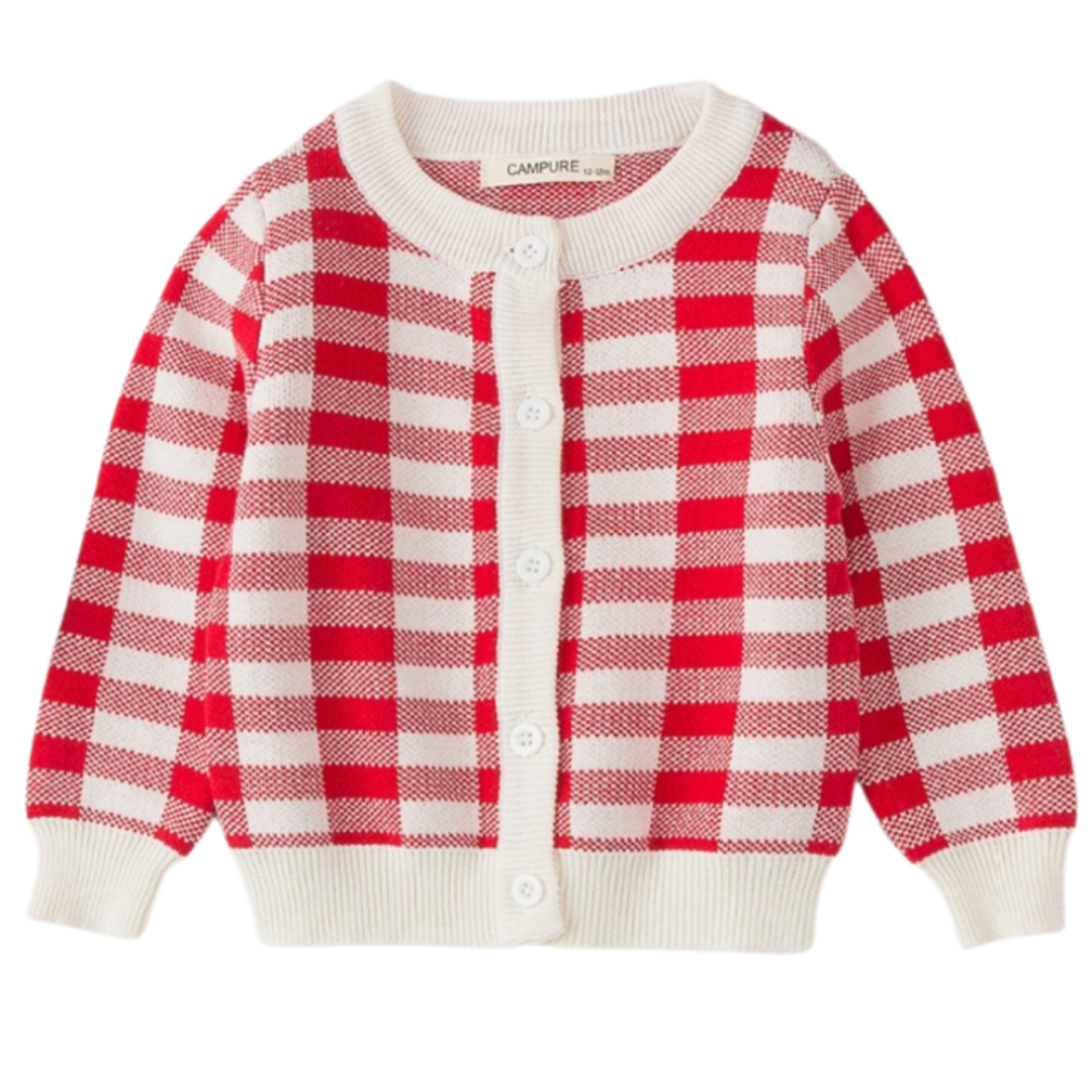 Diese Strickjacke mit Karomuster ist ein trendiger gestrickter Pullover für Mädchen, hergestellt aus weichem und hochwertigem Material. Dieser Pullover hat ein durchgehendes Karomuster, das Ihrem Mädchen einen niedlichen, modischen Look verleiht.