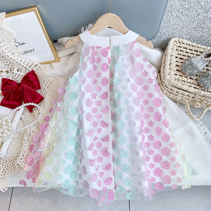 Vestido Princesa de Verano sin Mangas con Flores y Arcoíris a la Rodilla