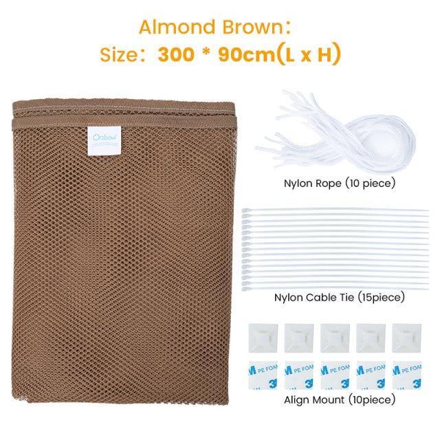 Lieferumfang: 10 Stück Nylonschnur, 15 Stück Nylon-Kabelbinder, 10 Stück 3M Kabelbinder-Sockel Gewicht: 372 g Material: Dickes Nylon-Mesh Design: 5mm Waben-Netz Farbe: Perlweiß / Mandelbraun Abmessung: 300cm * 90cm / 150cm * 90cm (L*H)