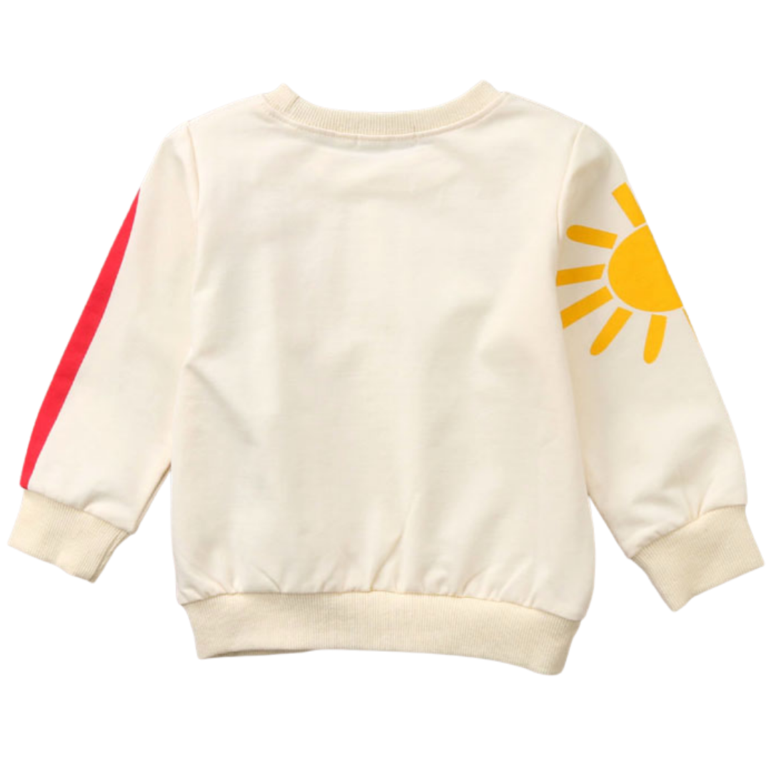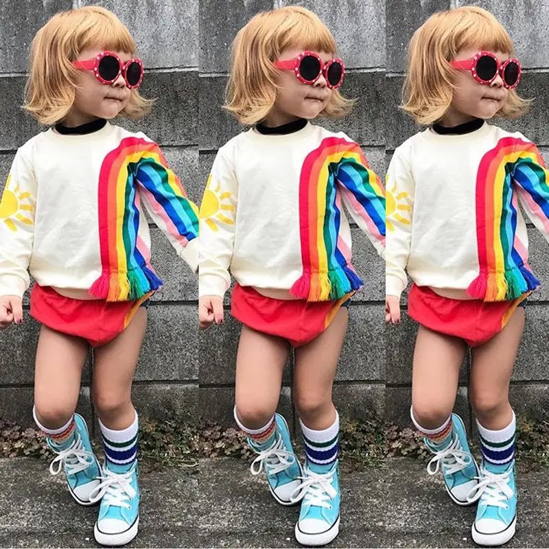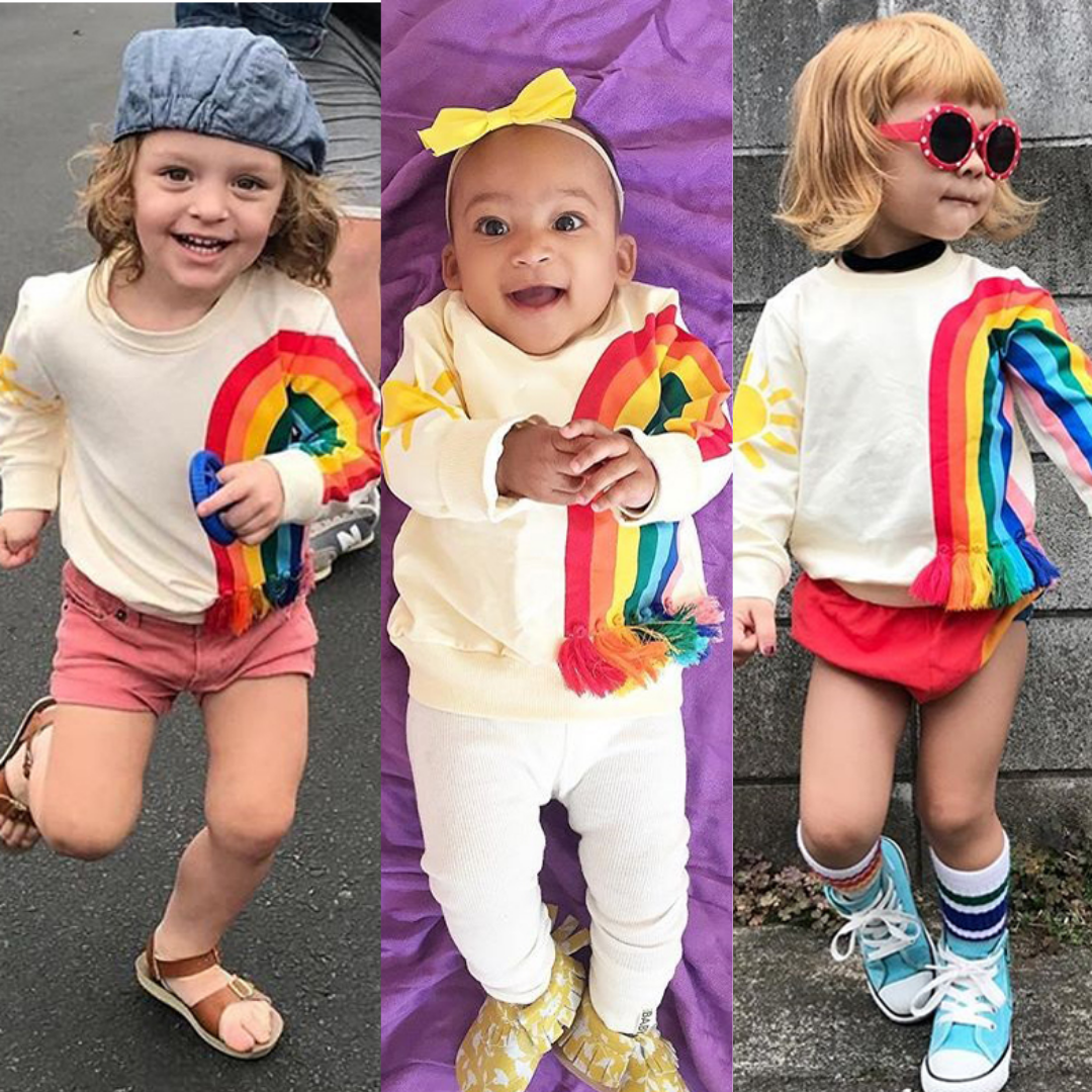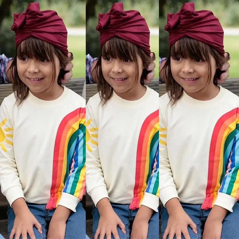 Dieser Pullover mit Regenbogen- und Sonnendruck ist ein niedlicher und bequemer Pullover für Kinder. Er ist eine tolle Wahl für Mädchen, um ihn im kalten Winter zu tragen. Dies ist ein fantastischer Pullover, den Sie zu jeder legeren oder formellen Party tragen können. Er hat wunderschöne gedruckte Muster auf der Vorderseite des Shirts.