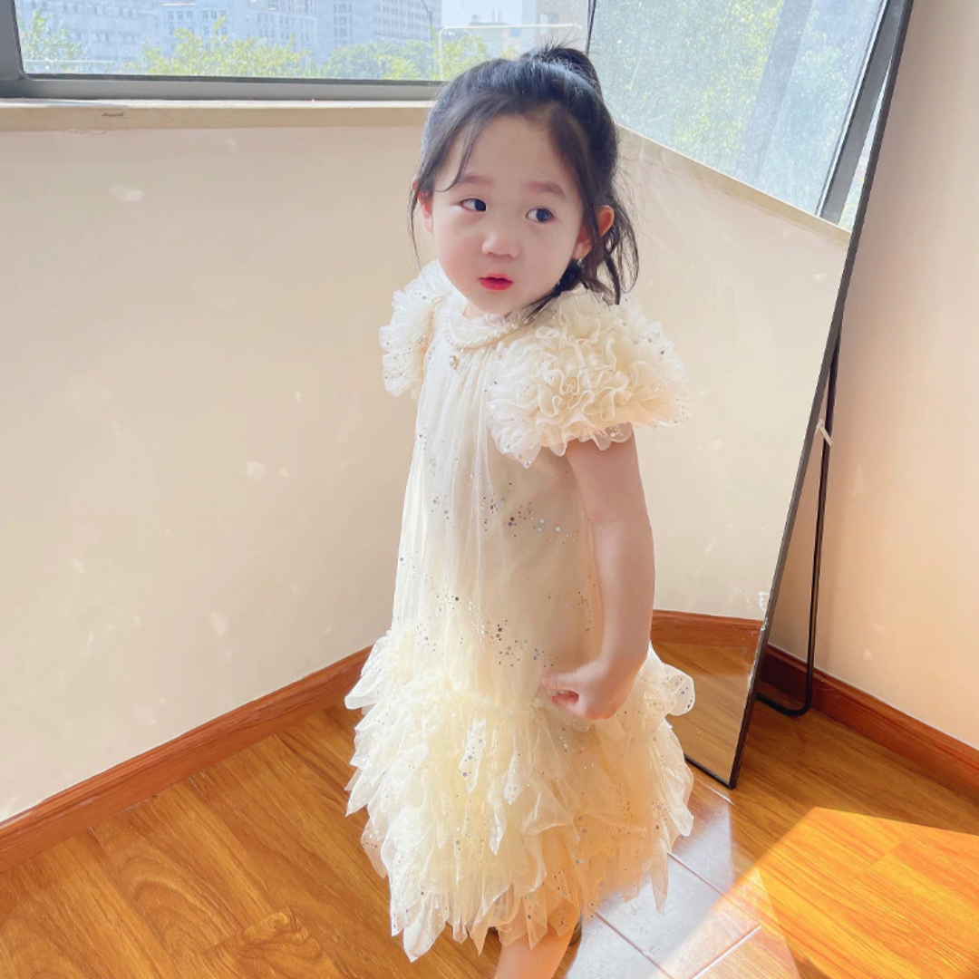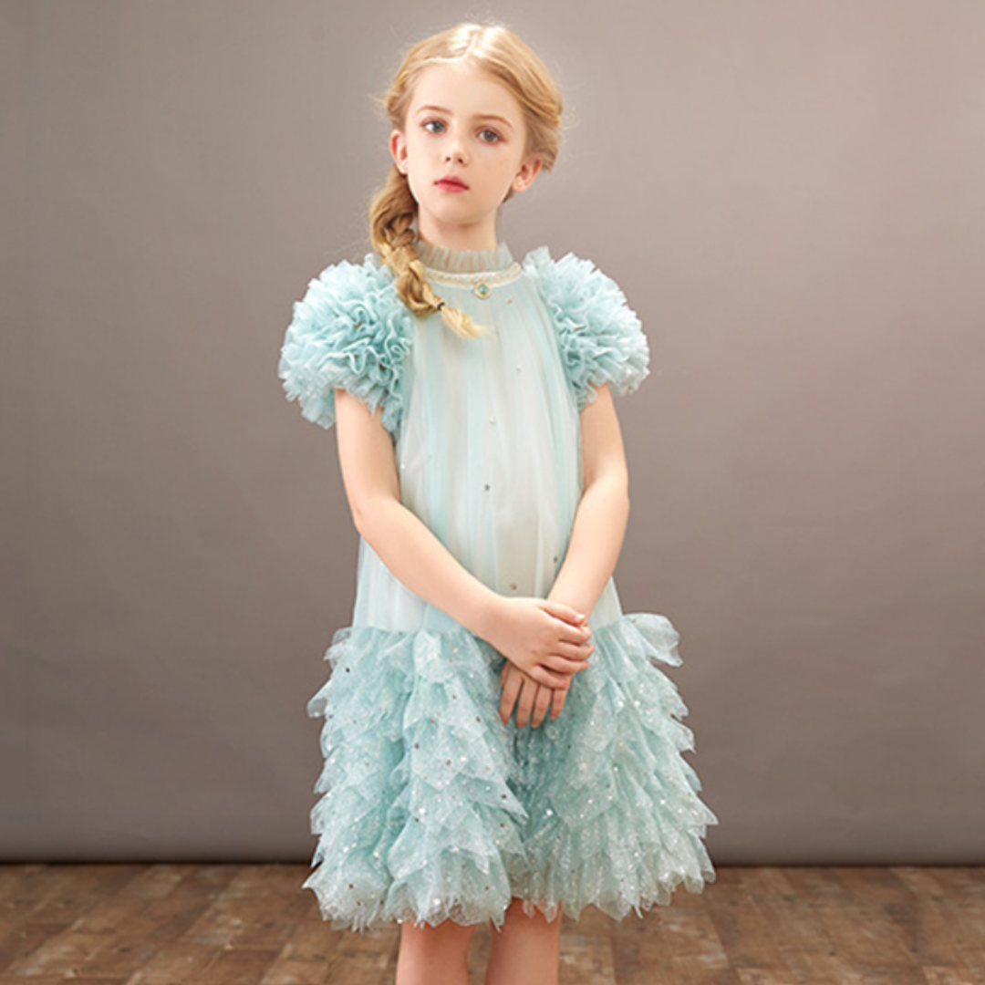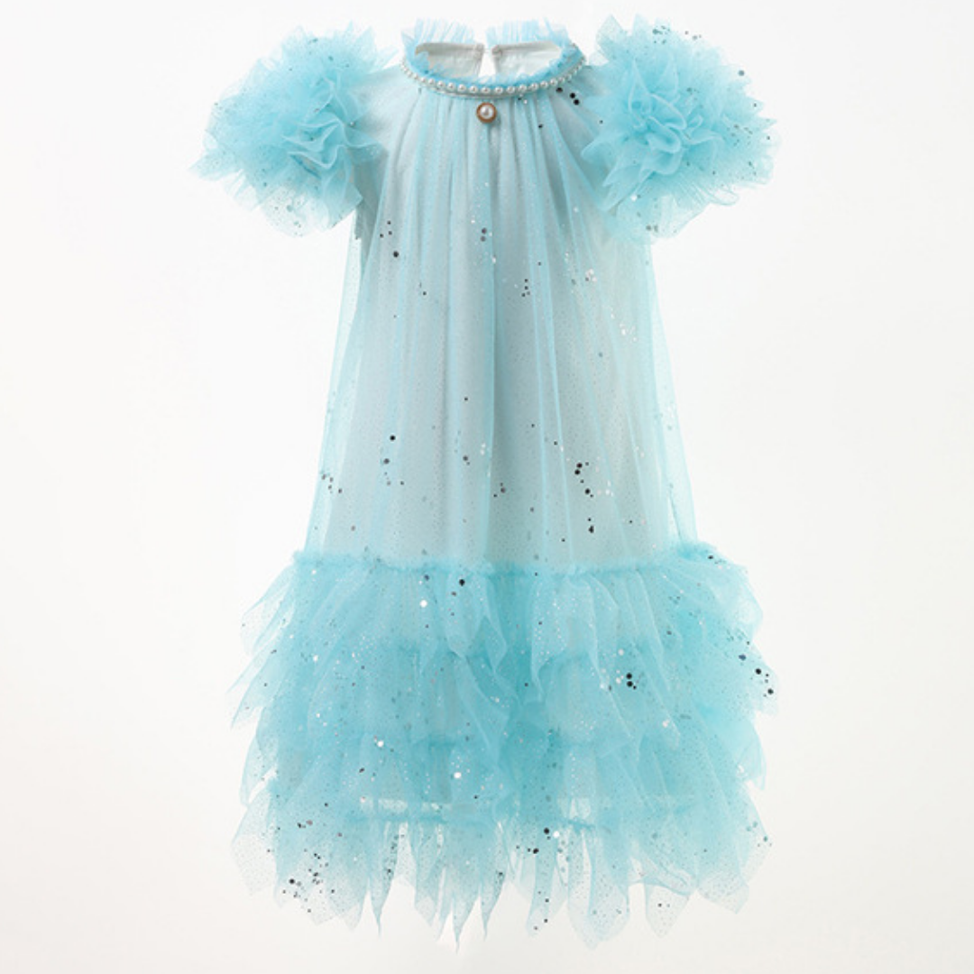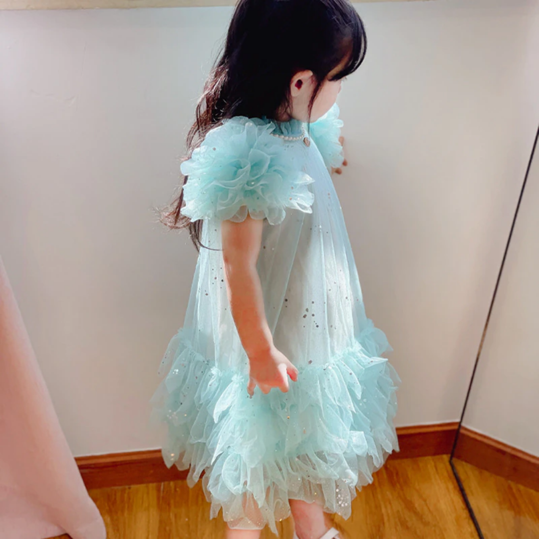 Dieses Rüschenärmel- und Rock-Punkt-Kleid aus weichem Tüll ist eine tolle Wahl für jede Party oder andere bevorstehende Veranstaltungen eines kleinen Mädchens. Der weiche Stoff und das hübsche Design passen perfekt zu jedem Geburtstagsoutfit.