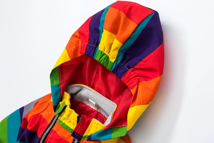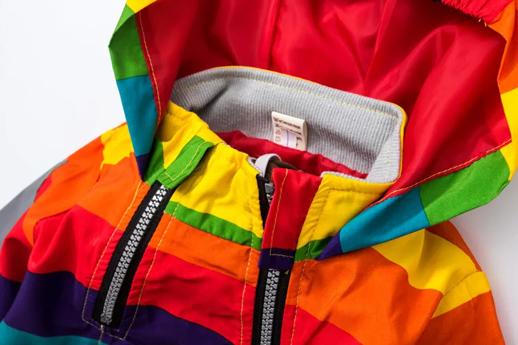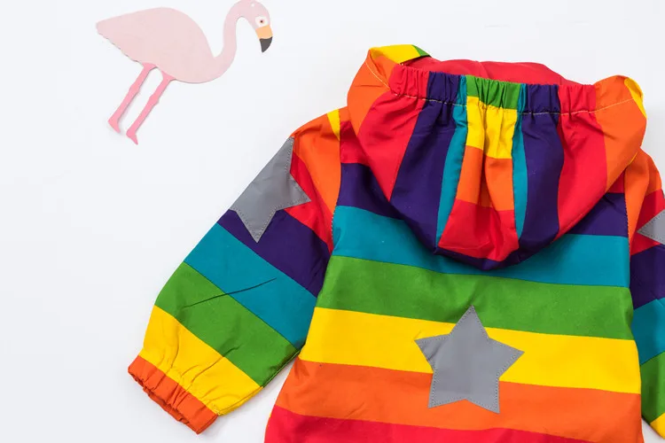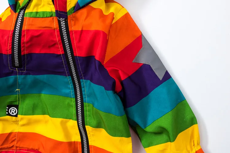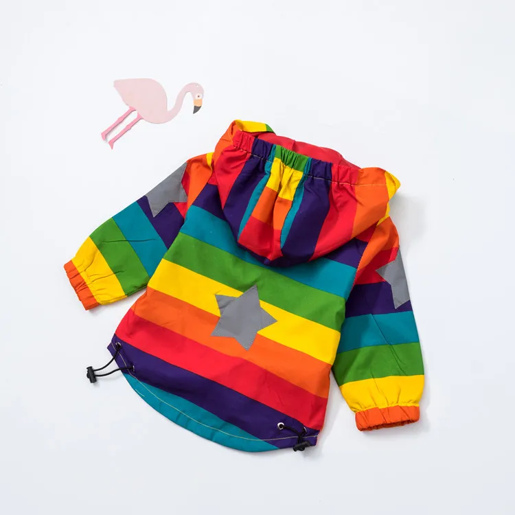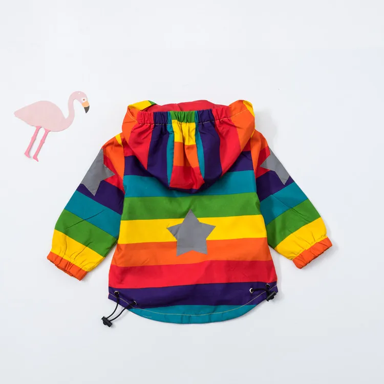 Chaqueta cortavientos con capucha de rayas arcoíris y estrellas