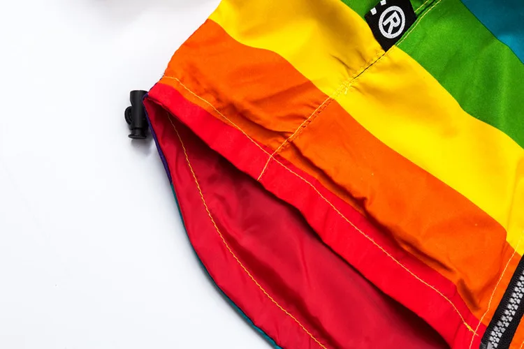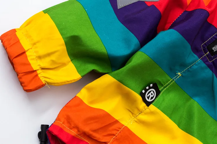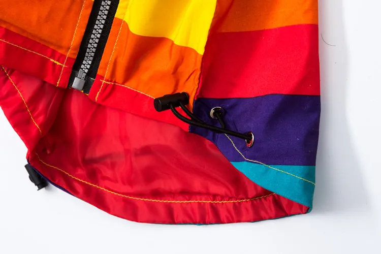 Ob Regen oder Sonnenschein, mit dieser Star Rainbow Stripes Windbreaker Hoodie Jacke bleibst du warm und trocken. Unsere stilvolle und erschwingliche Jacke sorgt dafür, dass du diesen Herbst und Winter cool aussiehst. Sie besteht aus Polyester- und Baumwollmaterial mit einem Regenbogenstreifen-Design. Die Jacke hat eine Kapuze für zusätzlichen Schutz vor Kälte, während der Reißverschluss dafür sorgt, dass alles an seinem Platz bleibt.