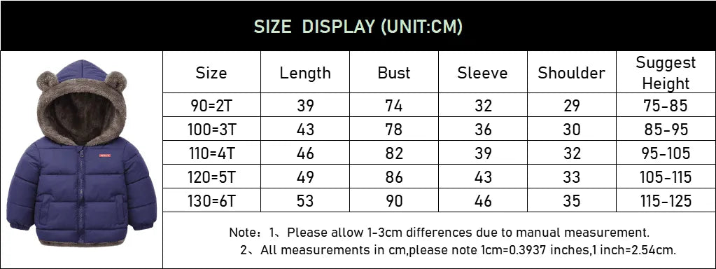 Erweitern Sie die Wintergarderobe Ihres Kindes mit unserer kuscheligen und stylischen Verdickten Kapuzenjacke für Babys von 2 bis 6 Jahren. Diese Jacke, erhältlich in den klassischen Farben Rot, Schwarz und Marineblau, ist die perfekte Ergänzung, um Ihr Kind im Winter warm und modisch zu halten.