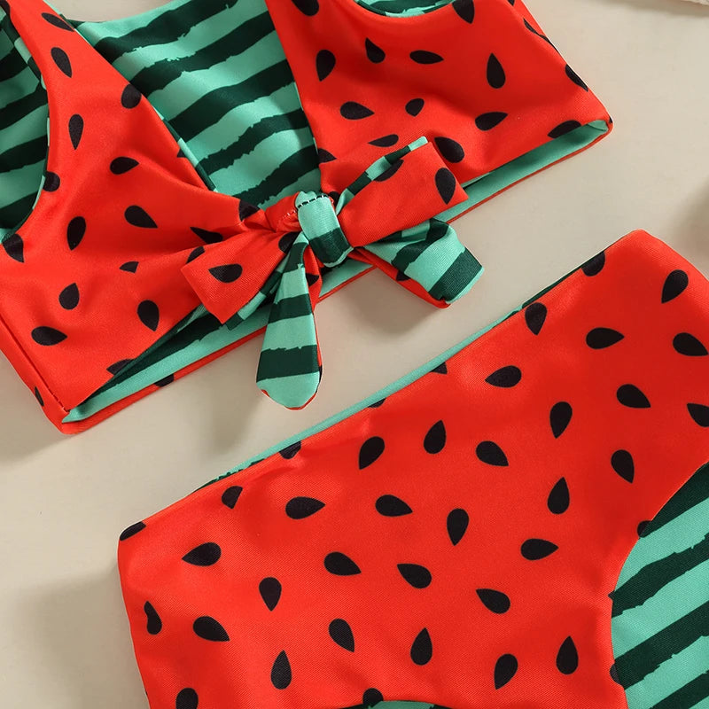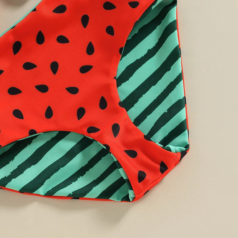 Introducing Our Watermelon Print Striped Swimsuit: Perfect for Your Little Girl's Summer Adventures!