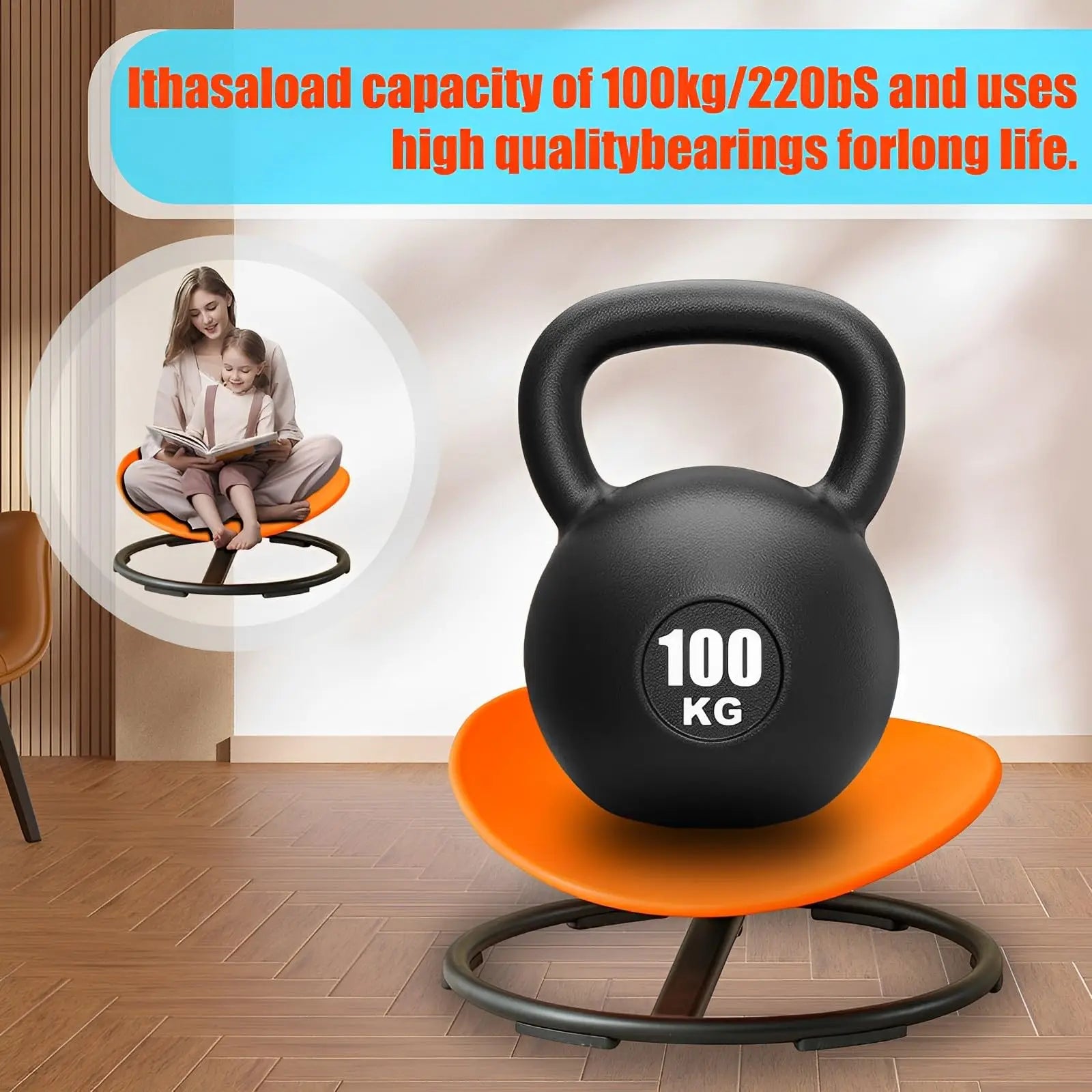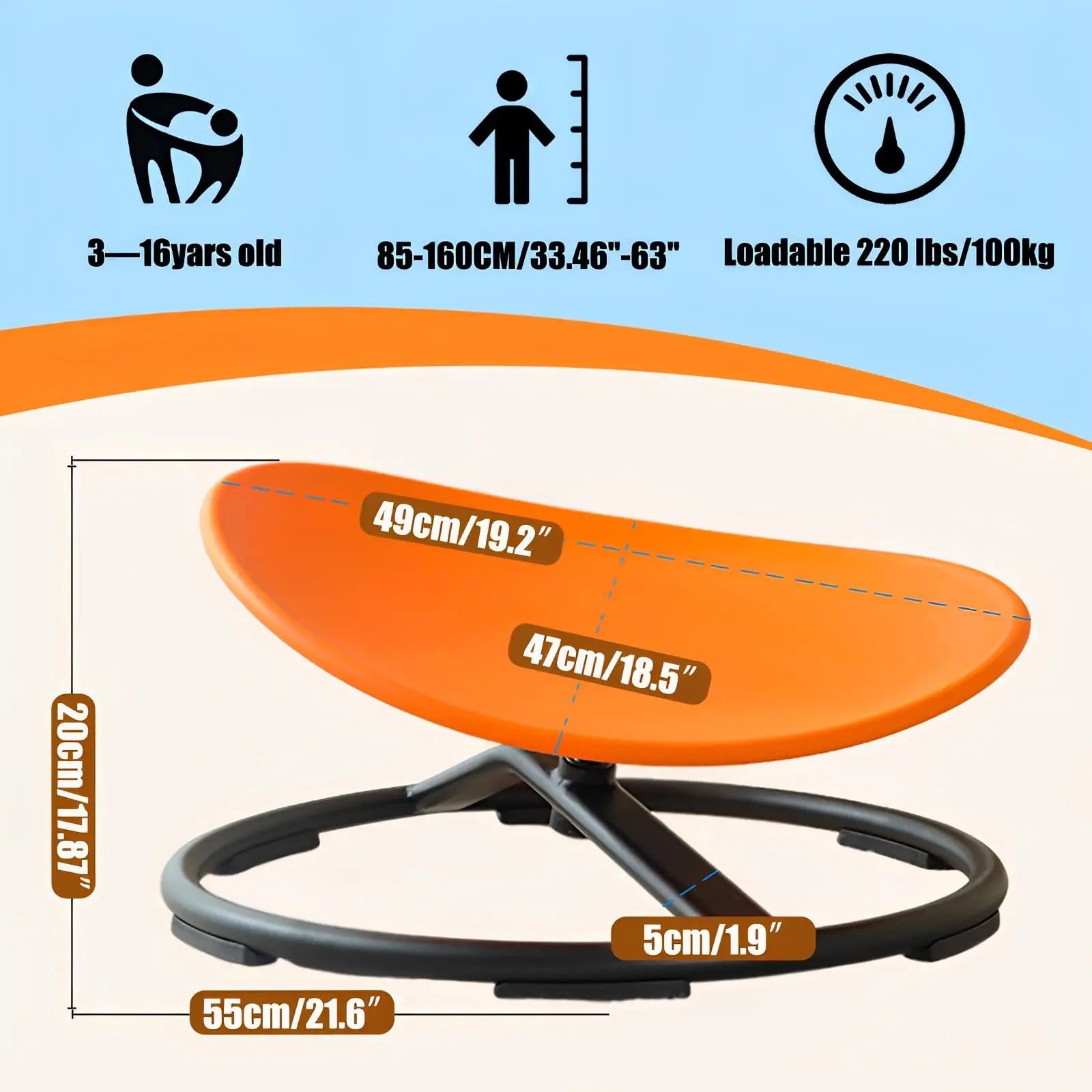 360° Spin Sensory Chair, Safe and Fun Balance Swivel Seat for Kids and Teens, Thickened Steel Frame, and 220 lbs Max Load (3–16 Years Old)