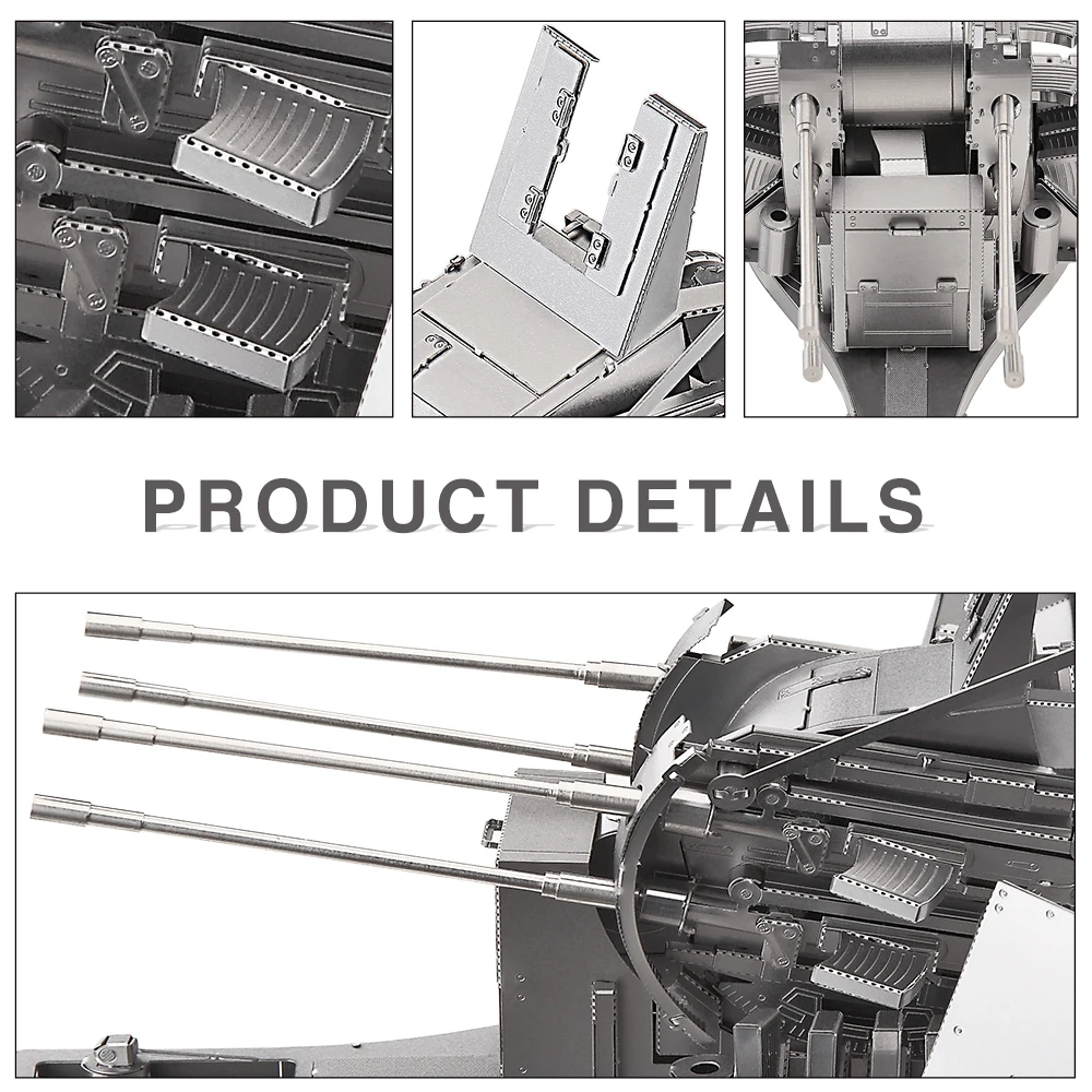 - Dieser Metallmodellbausatz enthält drei Bleche aus Edelstahlkomponenten sowie präzisionsgefräste Läufe.