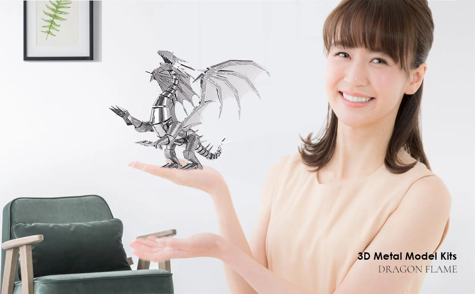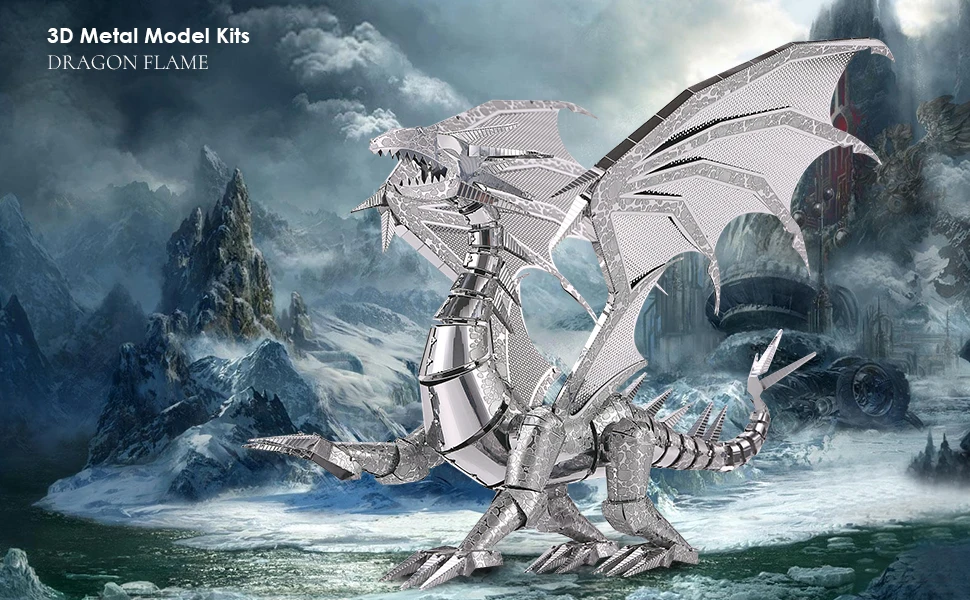 Das 3D-montierte Metallmodell Dragon Flame stellt den frechen Drachen dar, der Freiheit und Abenteuer liebt. Sein Körper ist mit dicken Schuppen bedeckt und verfügt über scharfe Zähne, kräftige Gliedmaßen und einen starken Drachenschwanz. Nachts steht es gerne ruhig am Rand einer Klippe und blickt in den Sternenhimmel.