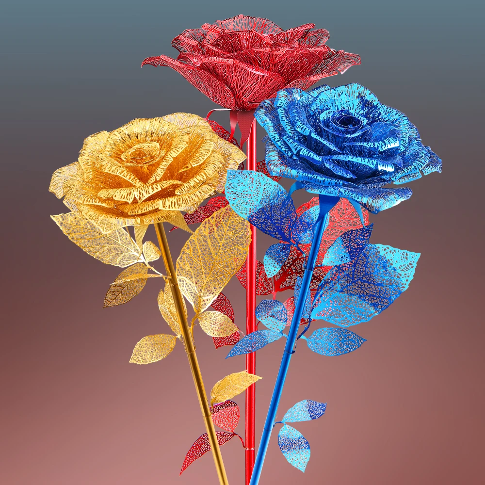 3D-Metall-Bausatzmodell „Rose“ nachgebildet. Eine äußerst zarte, duftende Blume, geschützt durch einen dornigen Stiel. In der griechischen Mythologie ist die Rose die Verkörperung von Liebe und Schönheit und symbolisiert Romantik. Liebende zeigen ihre Zuneigung oft durch das Verschenken von Rosen. Verschiedene Farben und Anzahlen von Rosen haben unterschiedliche Bedeutungen.