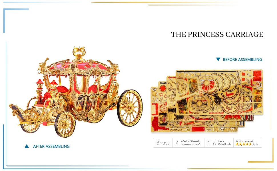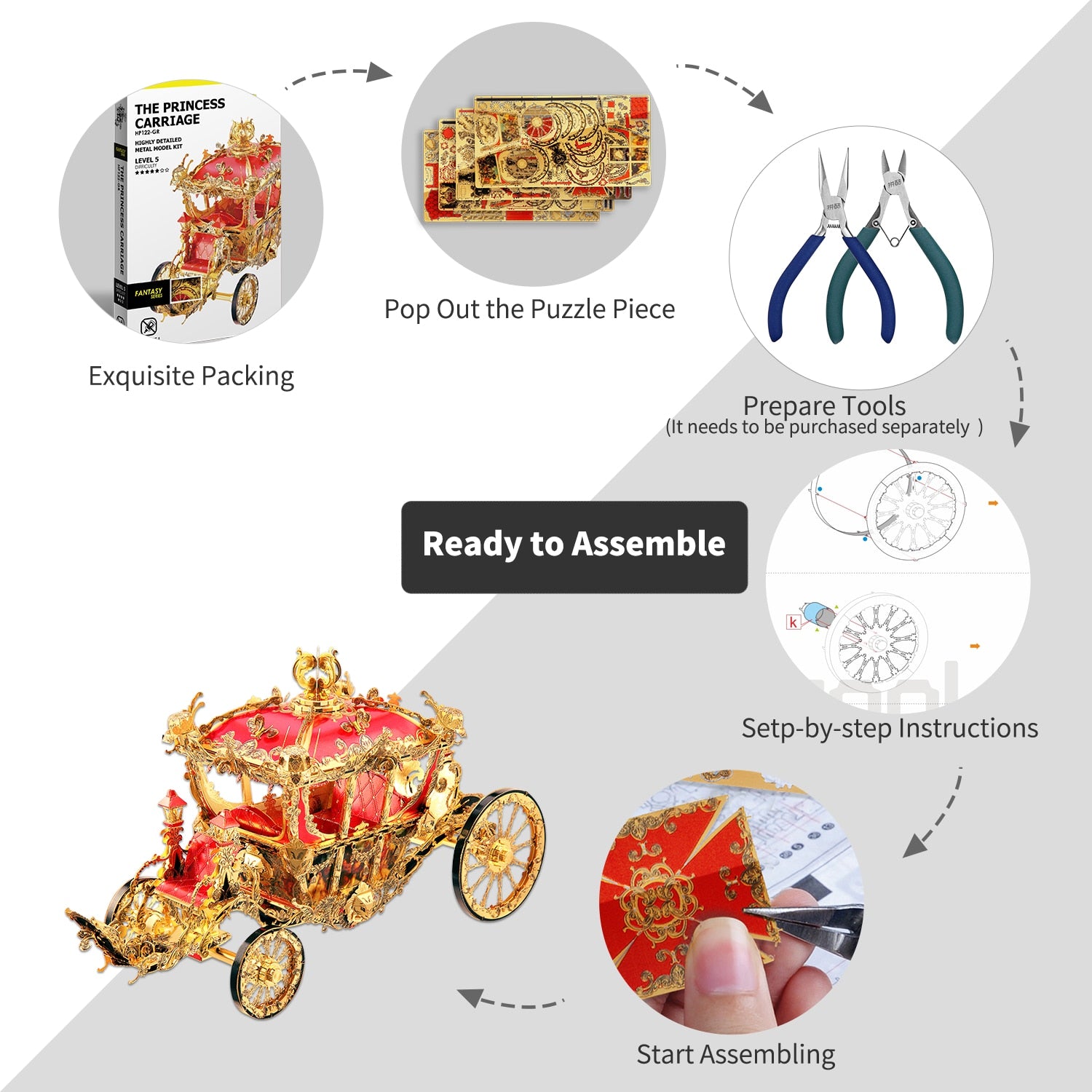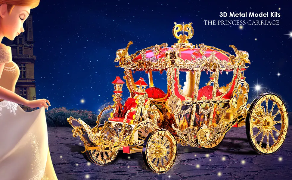 Das 3D-Metallmodell „Prinzessinnenkutsche“ ist die Kutsche der Prinzessin aus Märchen nachgebildet. Viel Spaß beim Zusammenbauen dieses lustigen Modells.
